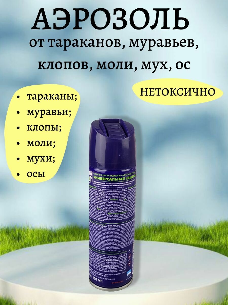 Аэрозоль от тараканов, муравьев, клопов, моли, мух, ос, 150 мл, 2 шт.