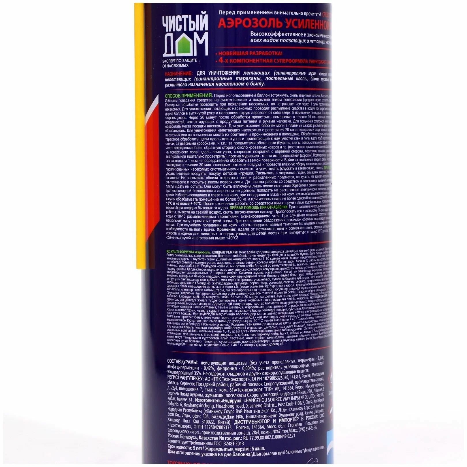 Купить Чистый Дом Усиленная Формула аэрозоль от клопов, тараканов, блох, муравьев (без запаха), 400 мл
