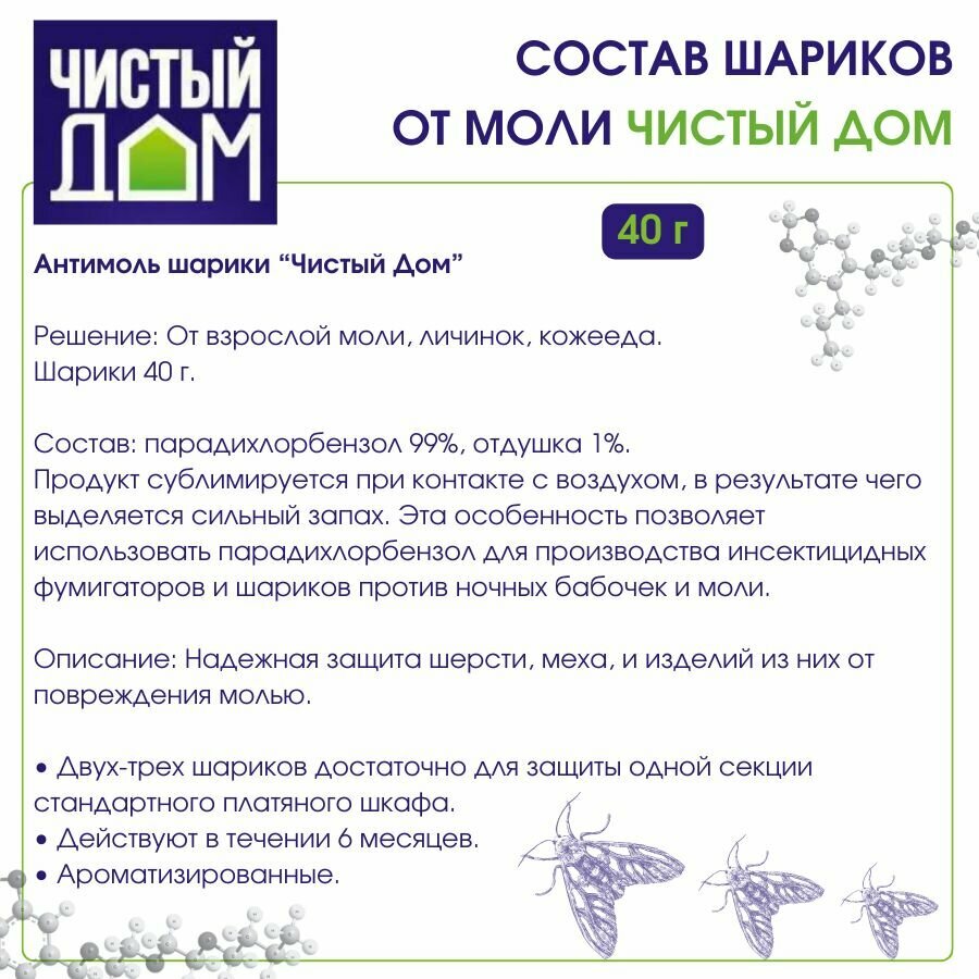 Средство от моли Чистый дом, шарики, 40 г