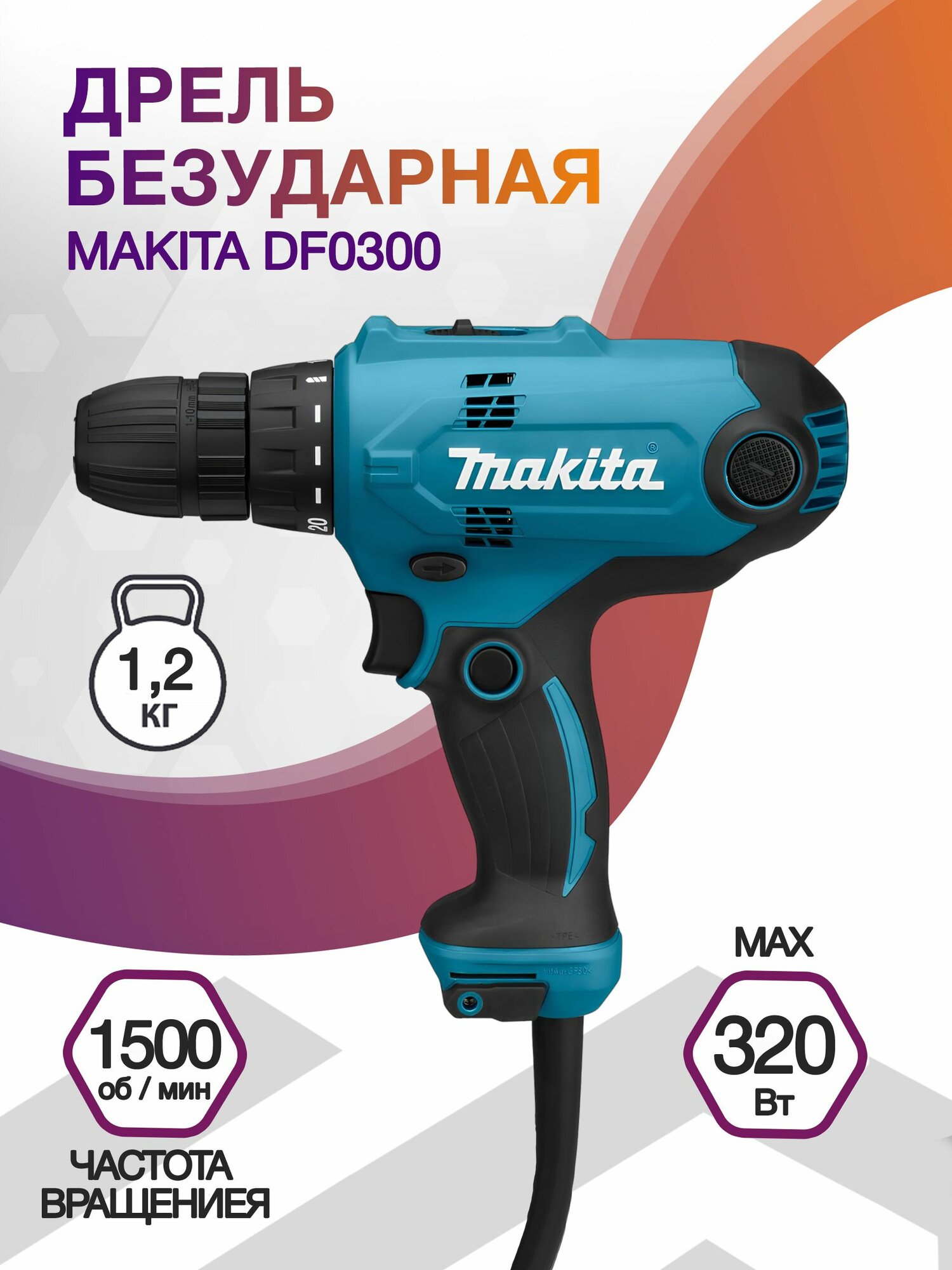 Дрель-шуруповерт сетевая Makita DF0300, 320 Вт