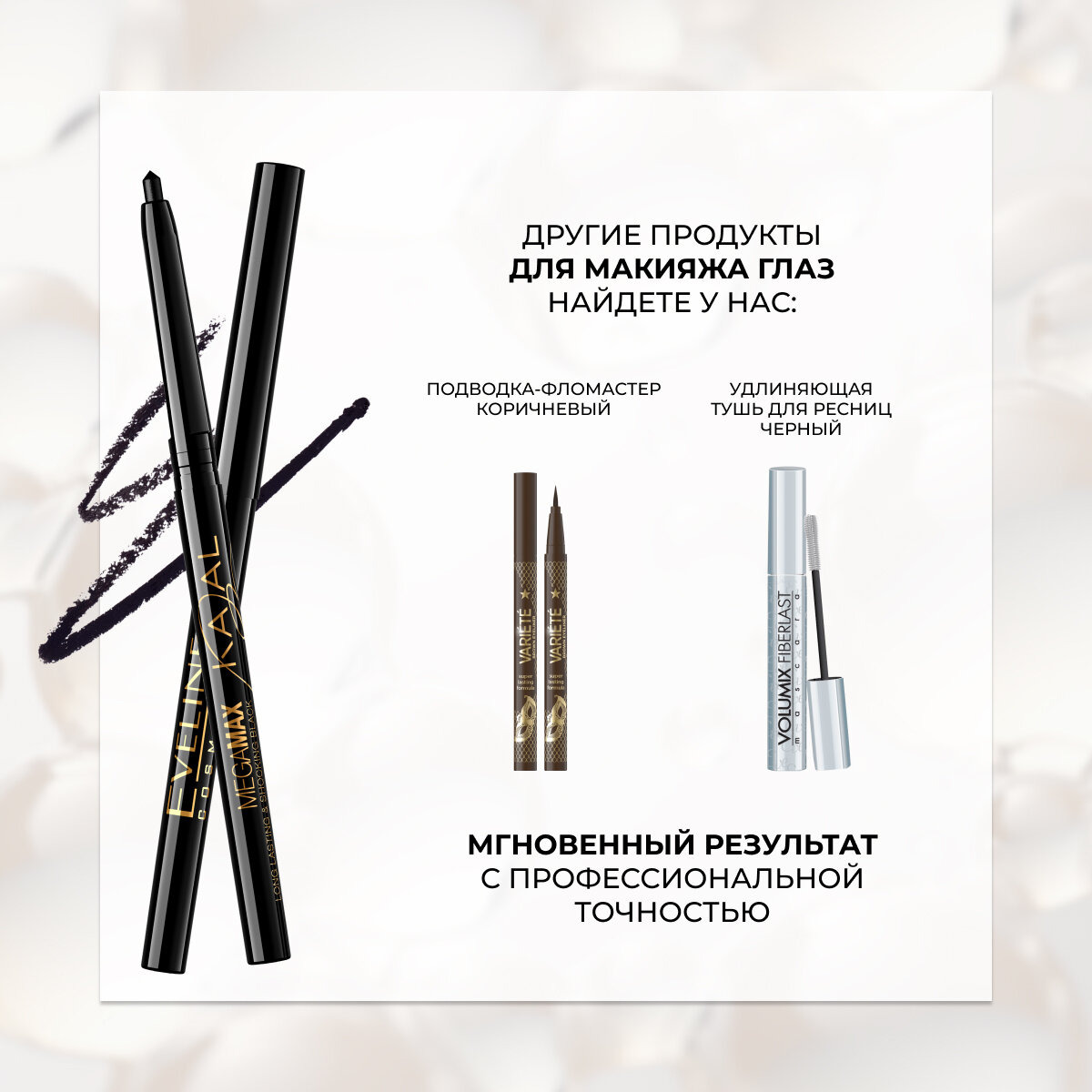 Ниже Вы можете прочитать отзывы на Карандаш для глаз EVELINE MEGA MAX KAJAL автоматический водостойкий черный, ознакомится с подробными характеристиками, посмотреть интересные обзоры и фотографии на Карандаш для глаз EVELINE MEGA MAX KAJAL автоматический водостойкий черный.