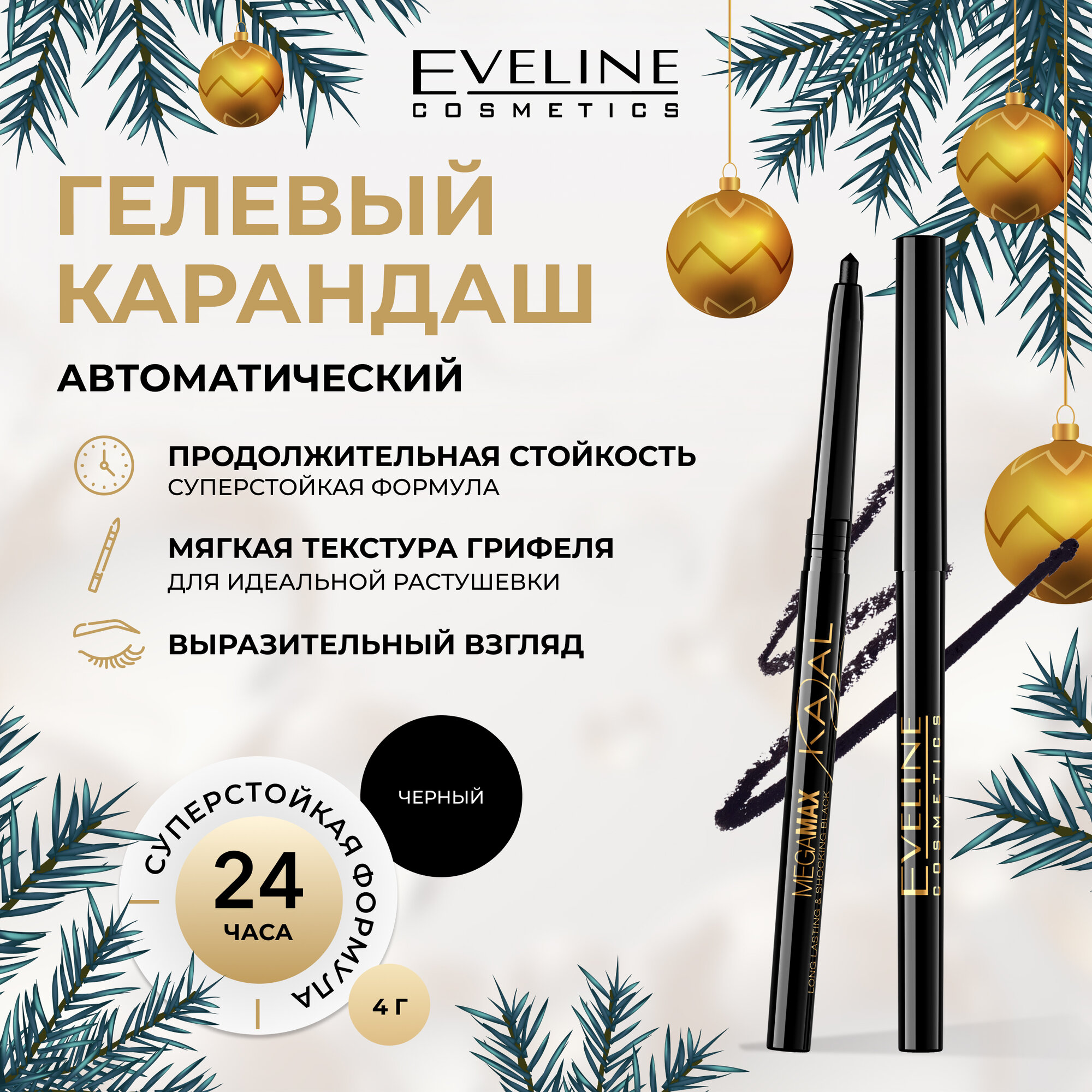 СохранитьКарандаш для глаз EVELINE MEGA MAX KAJAL автоматический водостойкий черный интересное: