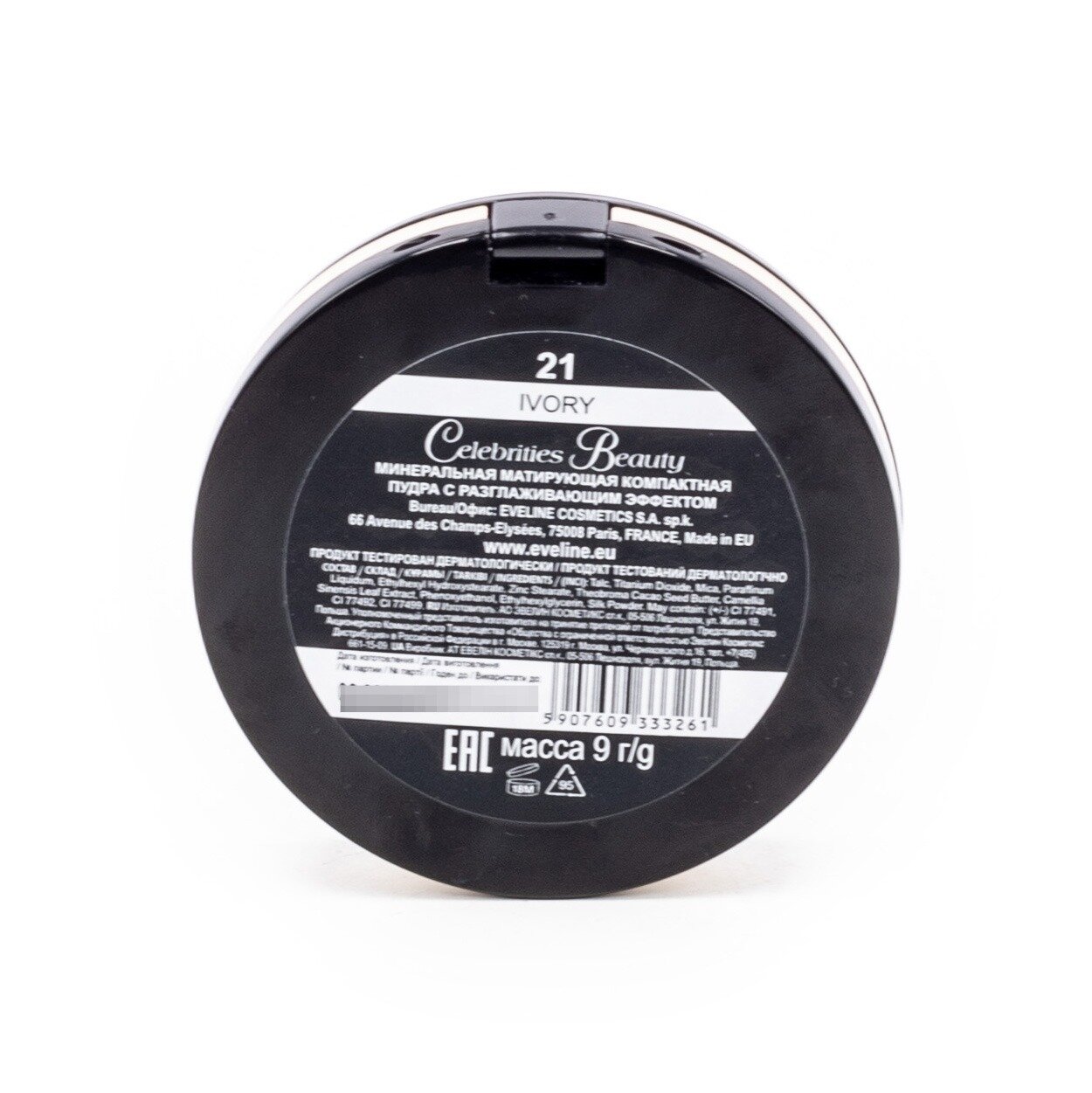Купить Пудра для лица EVELINE CELEBRITIES BEAUTY минеральная матирующая с разглаживающим эффектом №21 IVORY, 9 гр