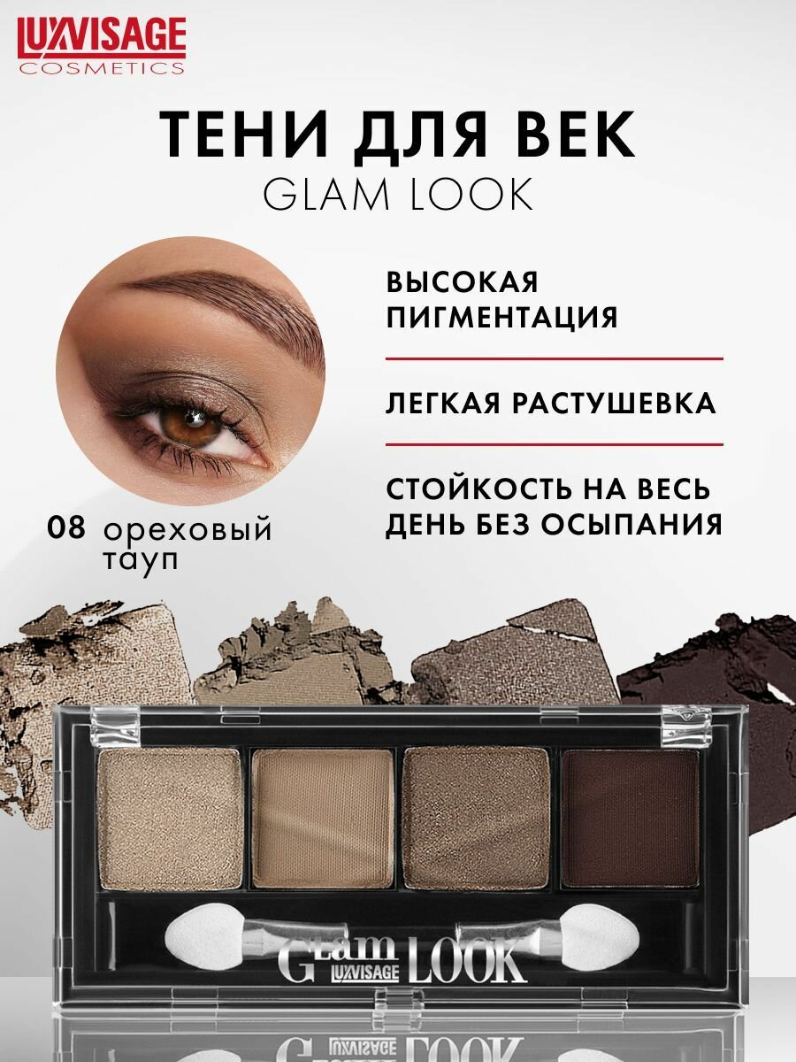 Luxvisage Тени для век Glam Look 4-х цветные, тон 8 ореховый тауп