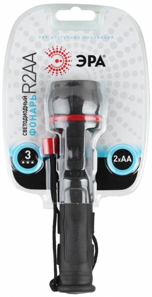 Ручной фонарь ЭРА R2AA черный + 2 батарейки