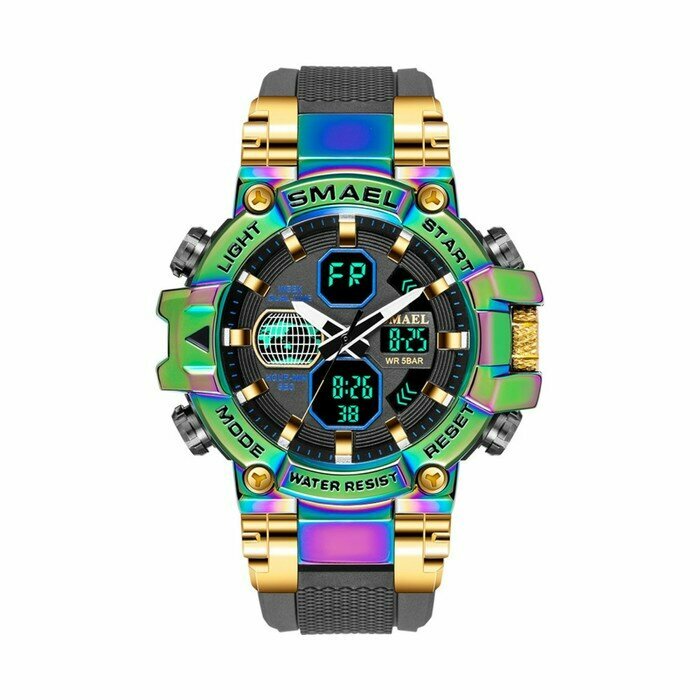 Купить Часы наручные электронные, с будильником, d-5.5 см, ремешок l-25.5 см, 5 ATM, градиент