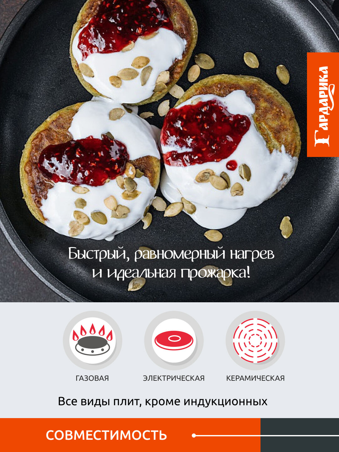 Сковорода блинная с антипригарным покрытием, блинница, 24 см, гардарика, 0824-18