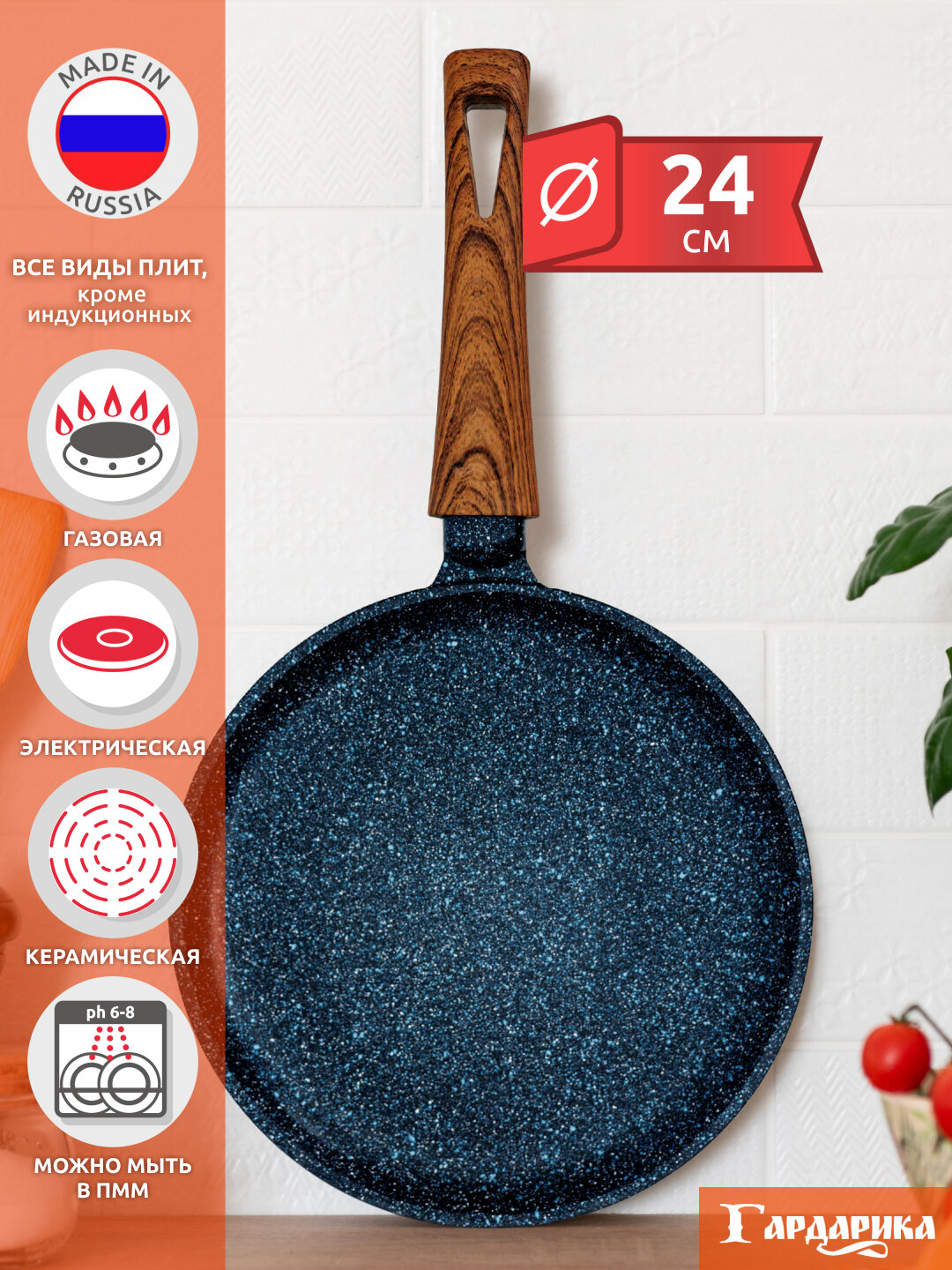 Сковорода блинная с антипригарным покрытием, блинница, 24 см, гардарика, 0824-18