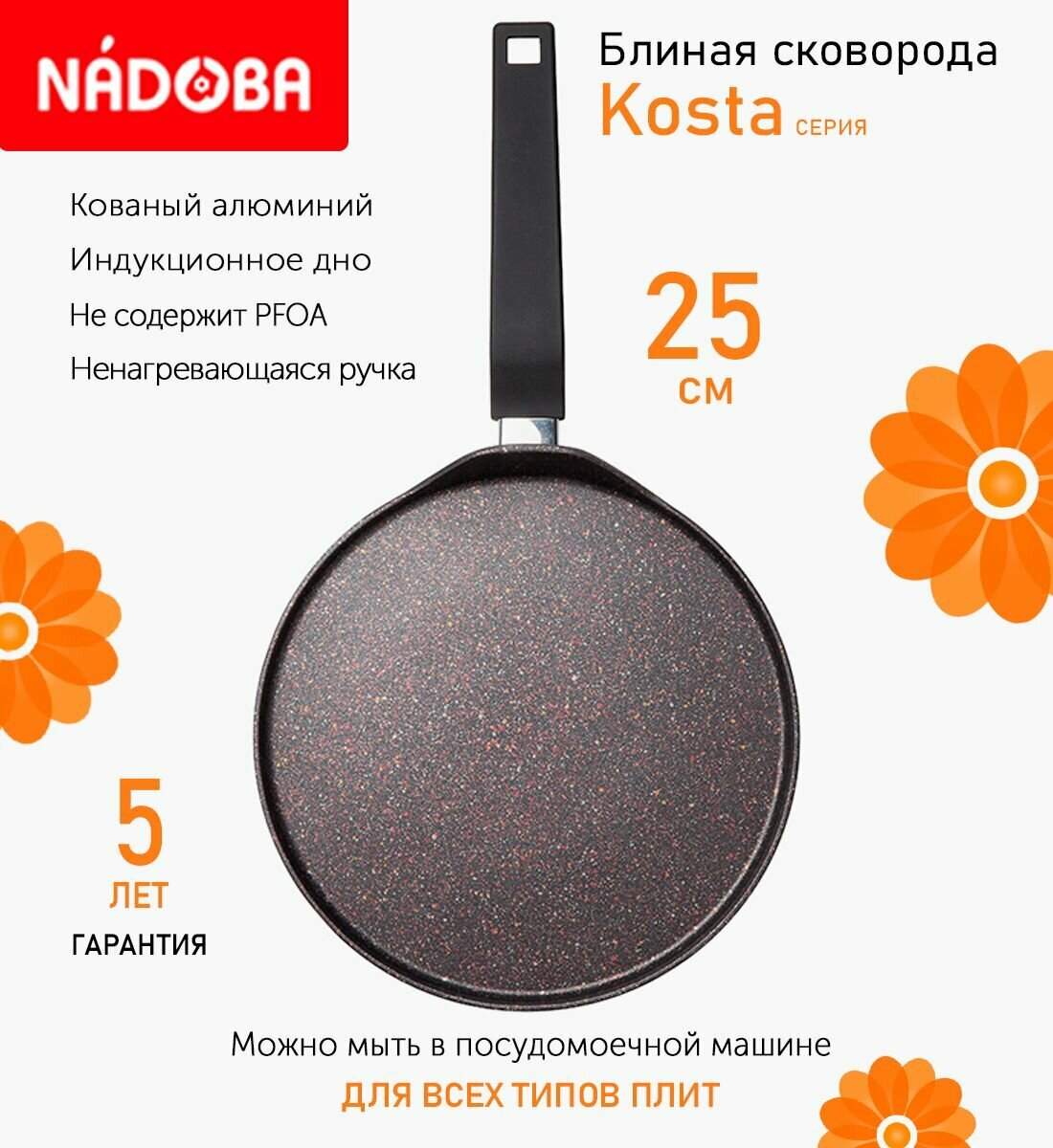 Сковорода блинная Nadoba KOSTA с антипригарным покрытием, 25 см