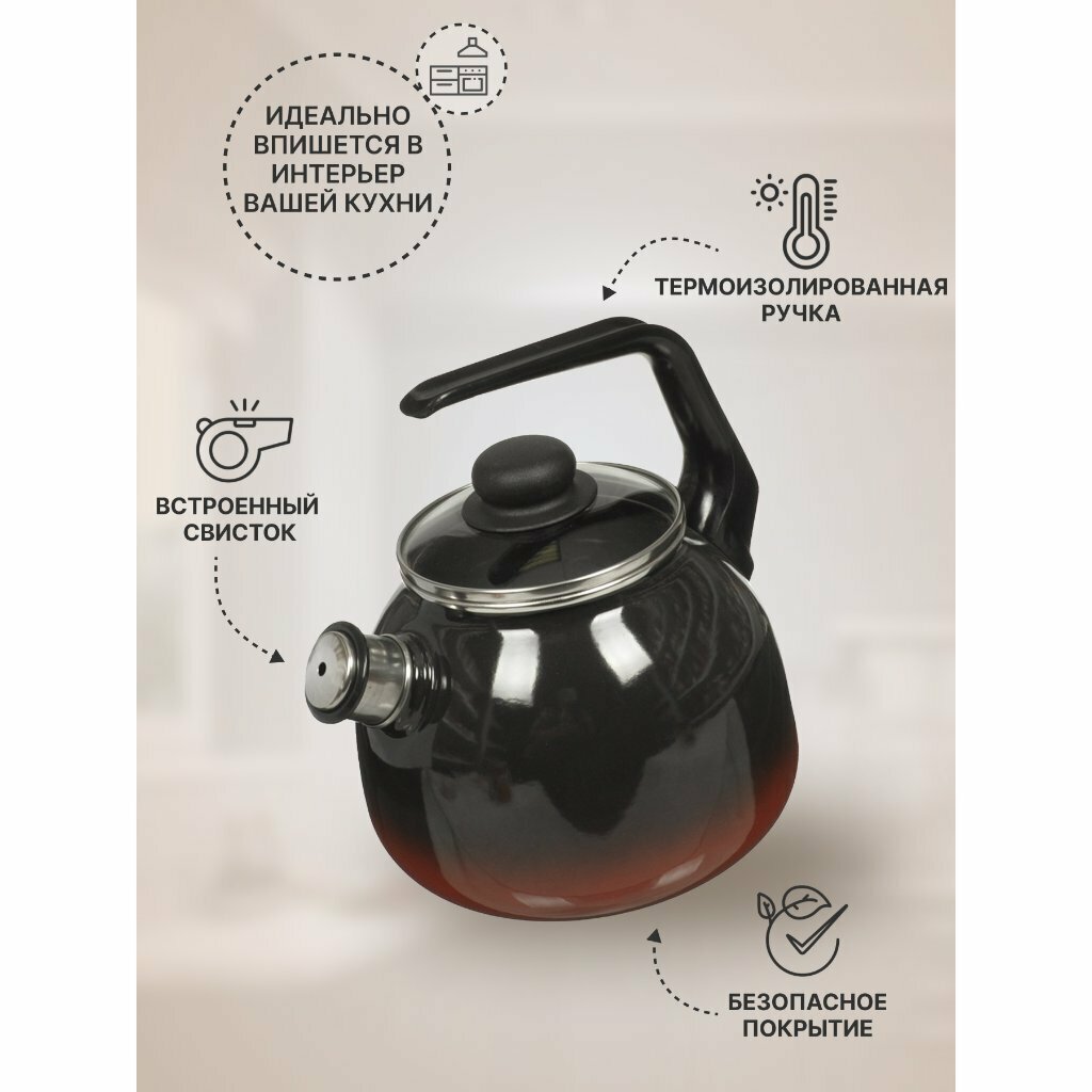 Чайник для плиты со свистком Кармен эмалированный, 2 л