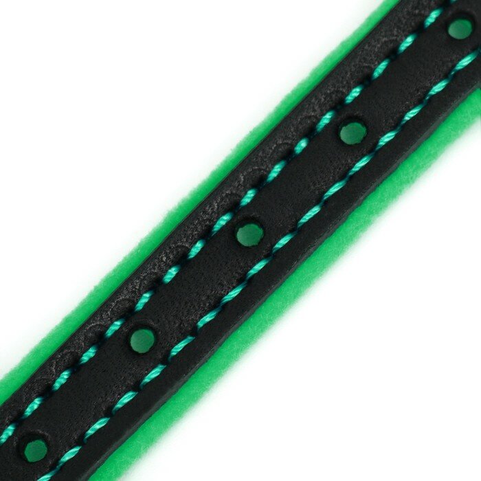 Ошейник кожаный с подкладом "Фетр", 1,6 см, ОШ 20-28 см, чёрный/зелёный