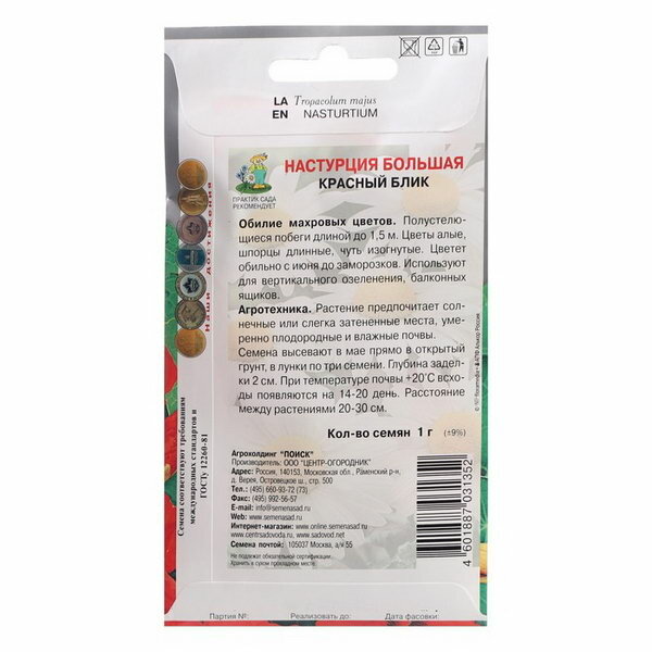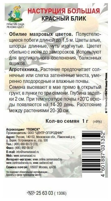 Ниже Вы можете прочитать отзывы на Семена Настурция большая Красный блик однолетние 1 гр., ознакомится с подробными характеристиками, посмотреть интересные обзоры и фотографии на Семена Настурция большая Красный блик однолетние 1 гр..