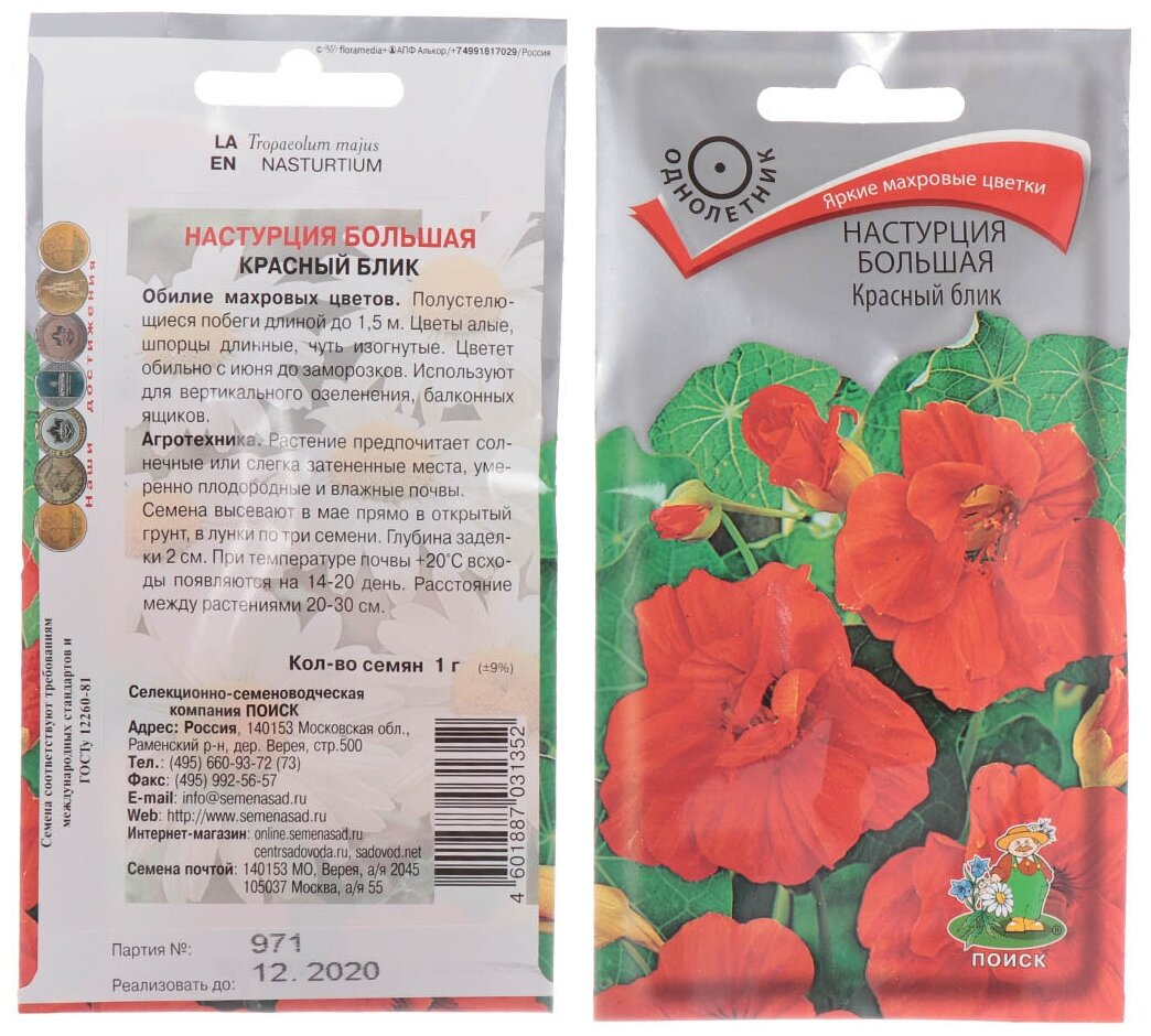 Семена настурция красный блик 1г большая