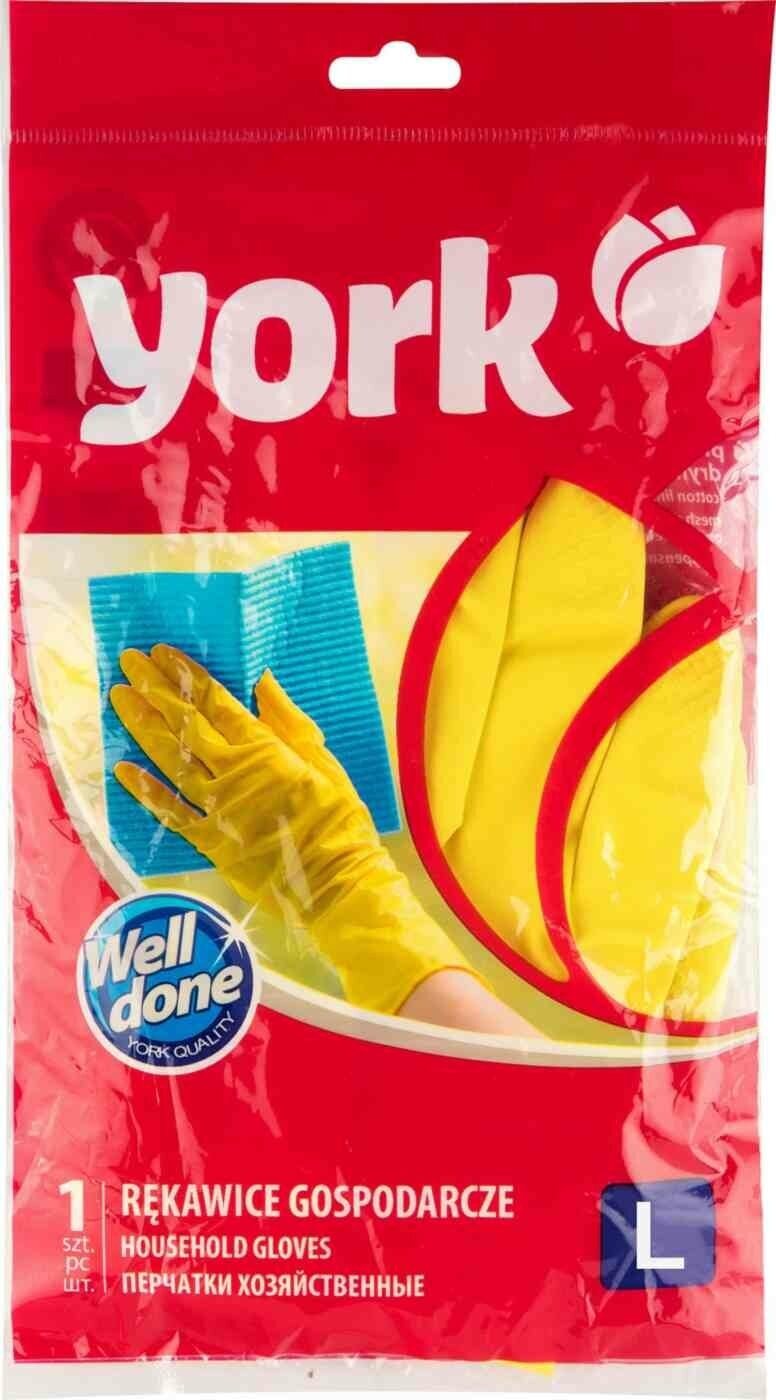 Перчатки York хозяйственные резиновые, 1 пара, размер L, цвет желтый