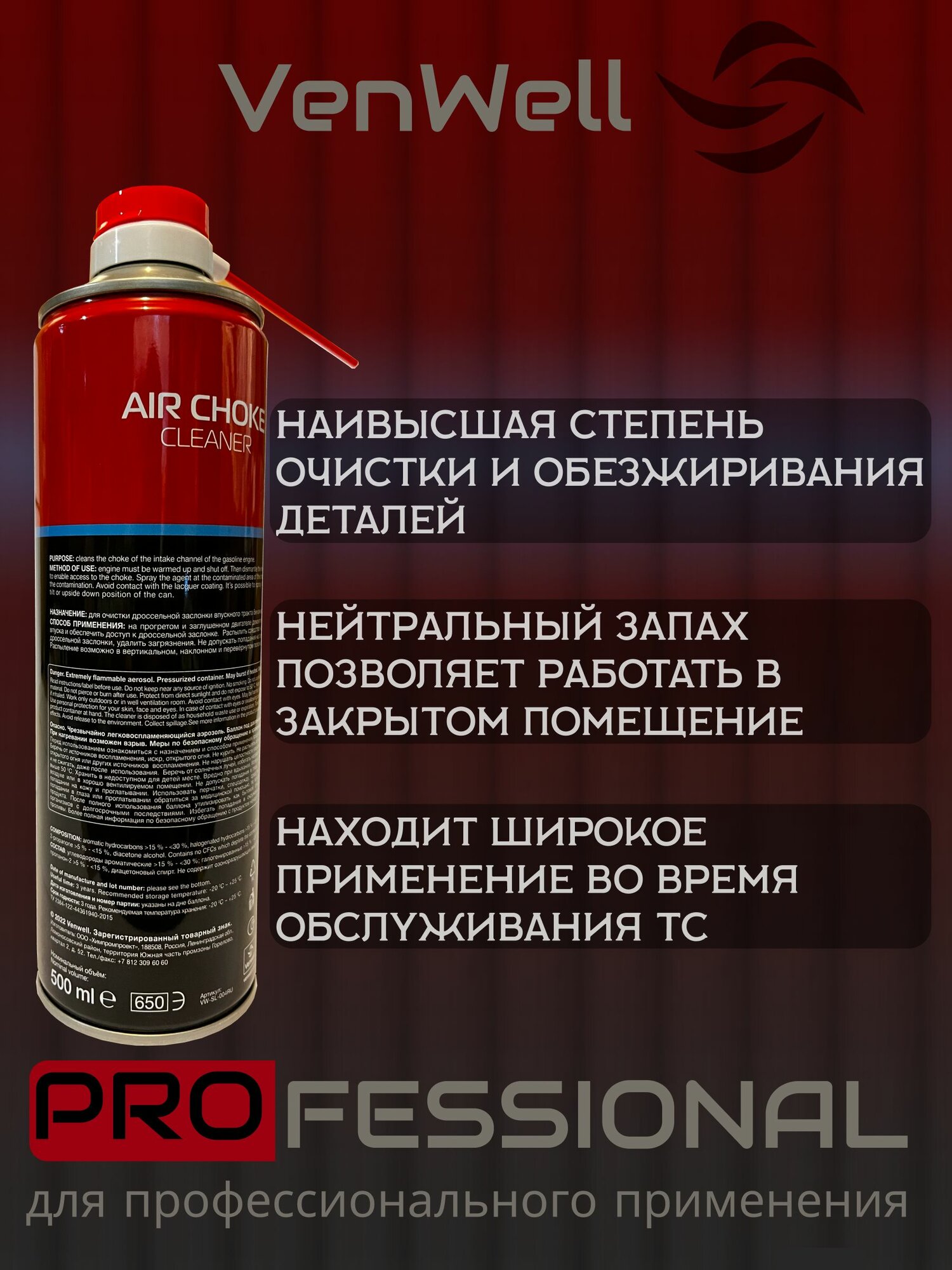 Venwell Очиститель дроссельных заслонок Air Choke Cleaner 500 мл Vw-sl- 004RU .