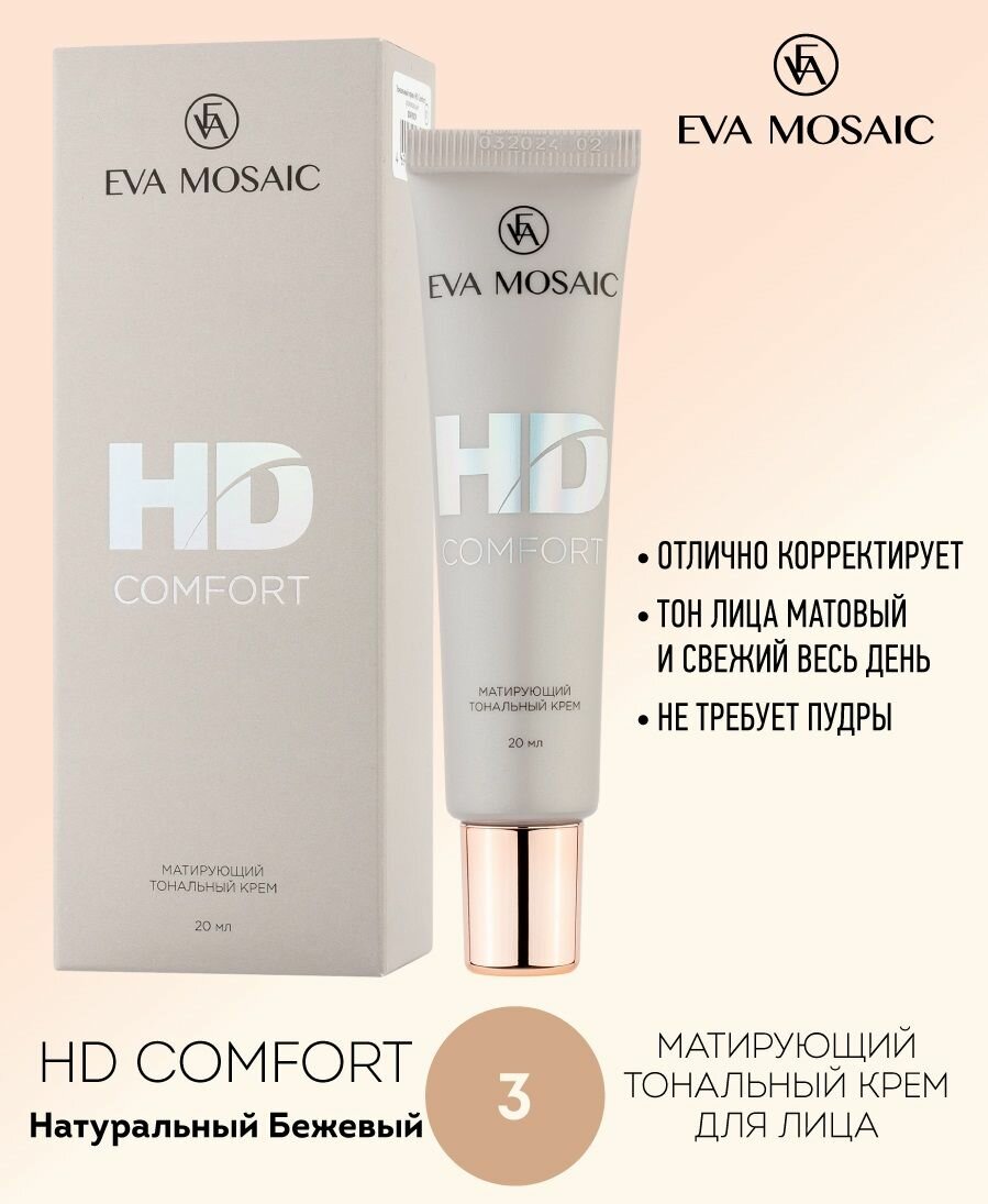 EVA MOSAIC Тональный крем HD Comfort матирующий, 20 мл, 03 Натуральный Бежевый