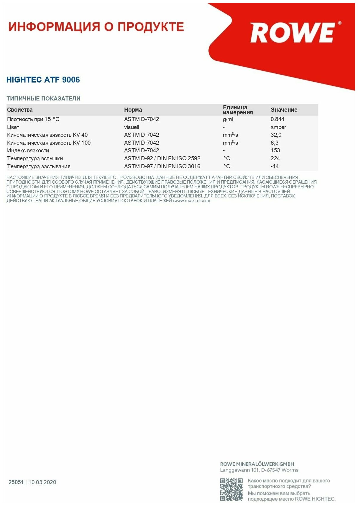Rowe Hightec Atf 9006 (1L) Масло Трансмиссионное ROWE арт. 25051001099