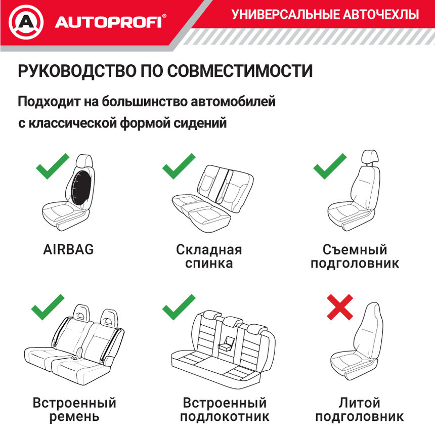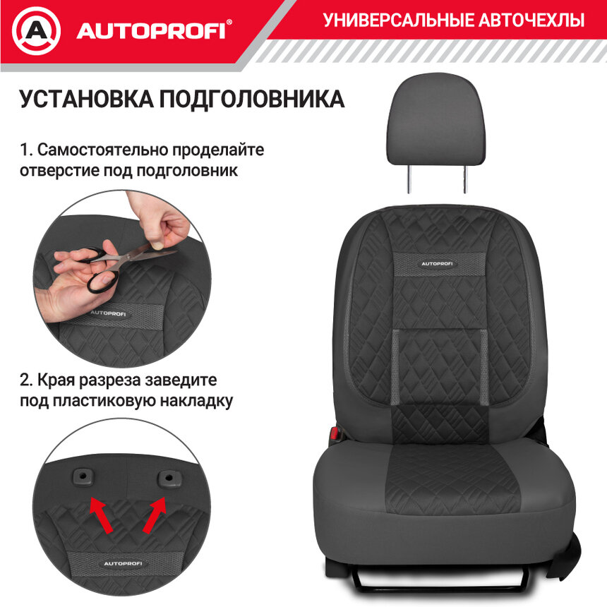 Чехлы автомобильные универсальные эко-кожа тёмно-серый (М) "AUTOPROFI" Comfort (11 предм, карман, 6