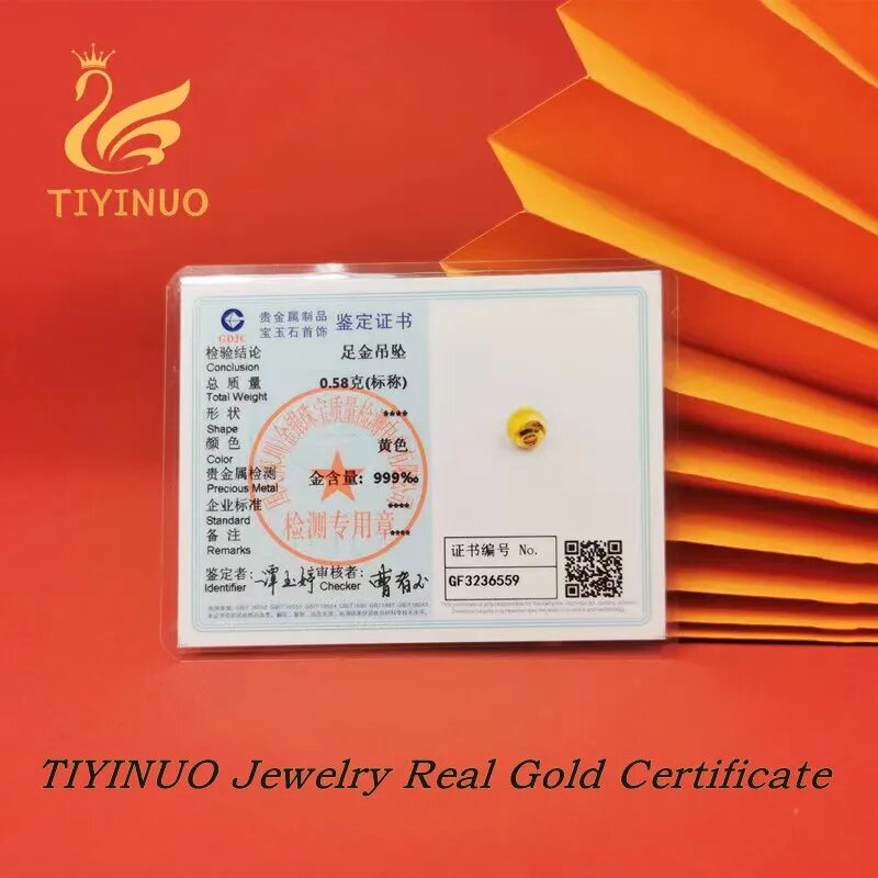TIYINUO, натуральное 24-каратное золото 999 пробы, ожерелье с подвеской из бисера Lucky Cat's Eye, классический подарок, роскошный подарок для женщин, изящные ювелирные изделия, 0.55g18k gold chain интересное: