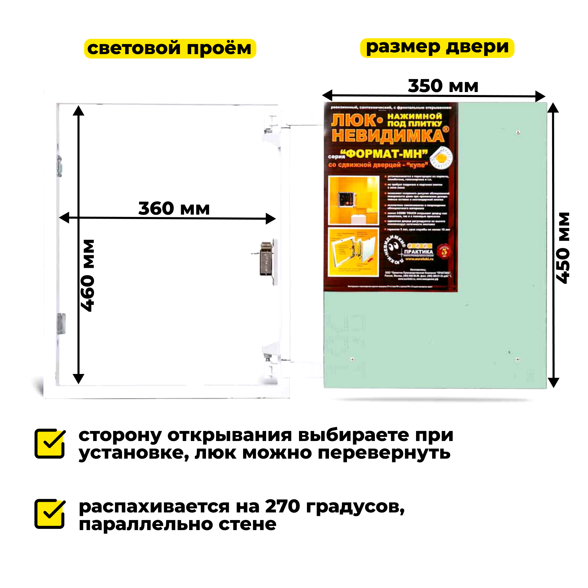 Стальной Люк под плитку Практика со сдвижной дверцей Формат МН 40-50