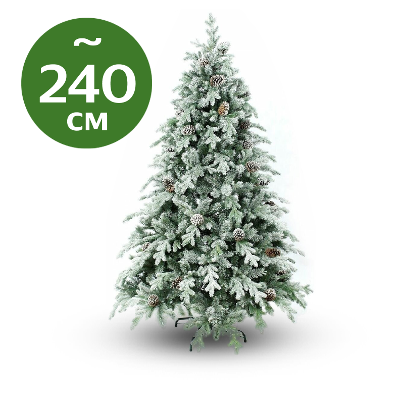 Ель искусственная "Кристал куин" (CRISTAL QUEEN) с шишками, (хвоя - PE+PVC), зелёная заснеженная, 2.4 м, BEATREES