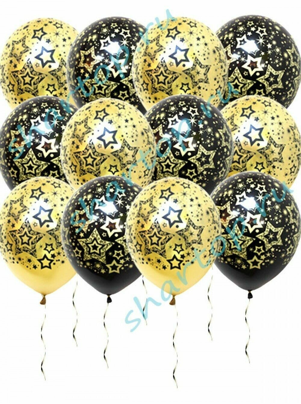 Шар 12" 30 см BLACK&GOLD 5 ст. рис Голливуд 25шт шар латекс 6055462