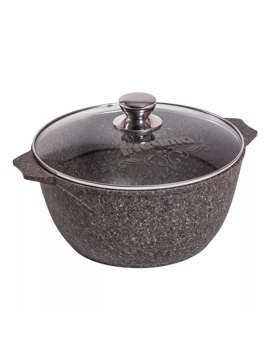 Ковш "Мечта" 1.7л Гранит с антипригарным покрытием с несъемной ручкой и крышкой, можно мыть в посудомоечной машине