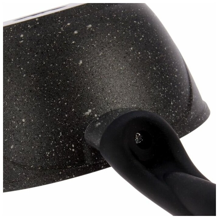 Ковш мечта 81802 Гранит black с несъемной ручкой, со стеклянной крышкой, 1,2 л, черный