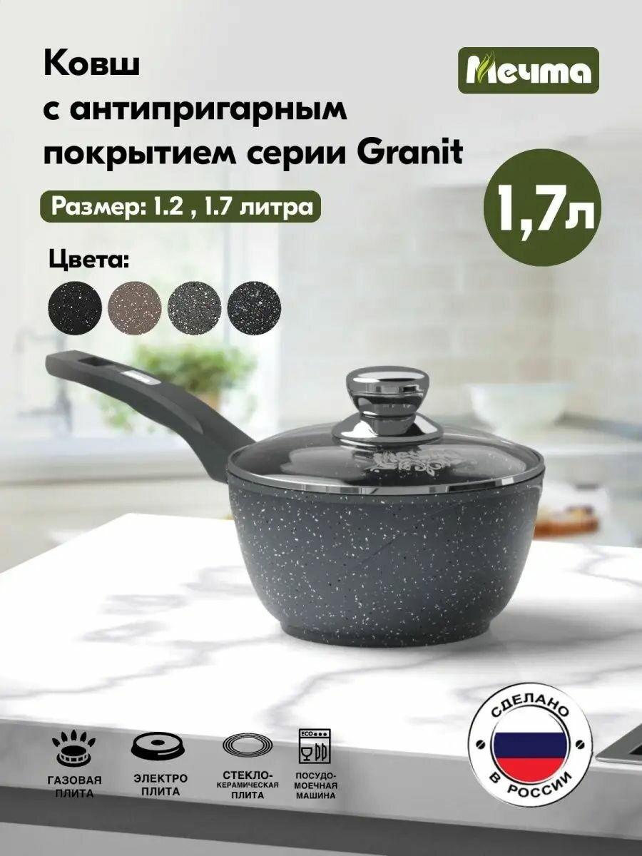 Ковш Гранит 1,7л, с крышкой, антипригарн.покрытие, д/всех плит (кроме индукции) 82701 Мечта
