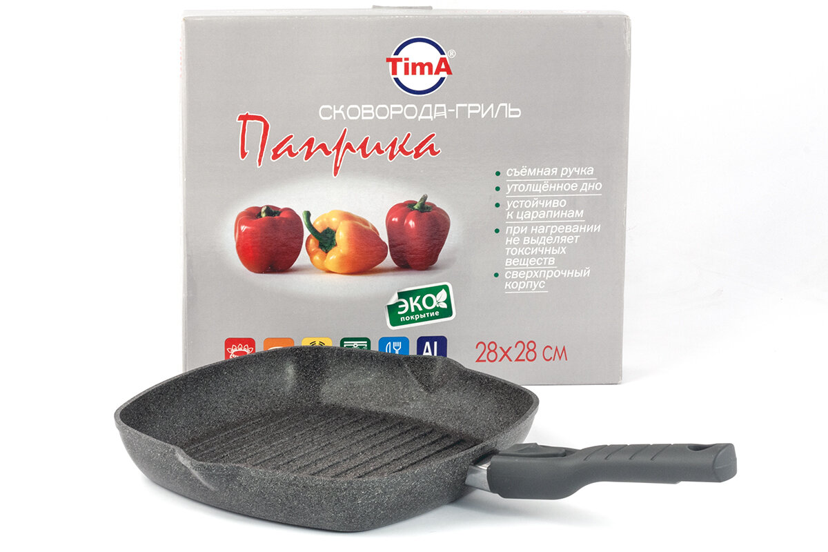 Сковорода-гриль TimA "Паприка" 28х28см со съемной ручкой с антипригарным покрытием, биол