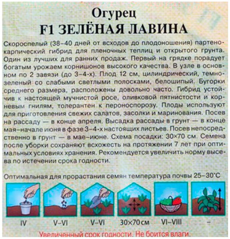 | Отзыв: | Огурец Зелёная лавина. Скороспелый, не требует опыления, взяла в качестве балконного варианта на ранние огурчики(посадила в середине марта). Позже добавлю о результатах выращивания. Большой срок годности семян |