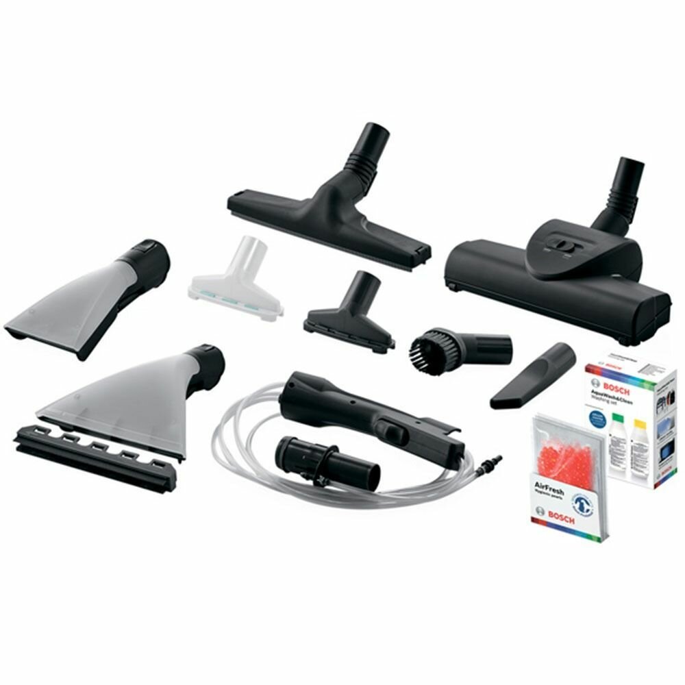 Моющий пылесос BOSCH заменяет собой три аппарата: ? С его помощью можно мыть пол, чистить ковёр и мебель (от пятен и загрязнений) ? Пылесос может делать сухую уборку в аквафильтр (большой контейнер с водой объёмом 5 литров) ? Также доступна сухая уборка в одноразовый пылесборник-мешок объёмом 3,5 литра (подойдёт для тех, кто не любит контакта с пылью) Можно мыть салон машины (после очистки, просушите салон). В отличии от большинства моющих пылесосов, здесь используется гибкий армированный шланг. Он обмотан двойной капроновой нитью и покрыт силиконом. Учитывая вес пылесоса, такой шланг имеет огромное значение, т.к. обладает повышенной надёжностью. Шланг подачи моющего средства при необходимости можно легко снять и промыть. Отличная мощность мотора - 2100W позволяет производить качественную уборку всех видов поверхностей. Эффективный фильтр HEPA H13 отлично защищает от пыли, выходящий из пылесоса воздух. Фильтр моющийся, не требует замены. В данном пылесосе установлены прорезиненные колёса для защиты пола от царапин. Длина сетевого шнура 9 метров (радиус действия 12 метров). В комплекте присутствует турбощётка, которая подходит для особо тщательной уборки; очищает ковёр от волос, шерсти и других загрязнений. Удобное хранение малых насадок (щелевой, чистки корпусной и мягкой мебели) в корпусе пылесоса. Автоматическая смотка кабеля при нажатии на кнопку. Металлическая телескопическая трубка. Электронное управление мощностью на корпусе. Высокие стандарты качества (пылесос произведён на заводе в Польше). Аксессуары в комплекте: ? Насадка для сухой уборки пол-ковёр ? Насадка для уборки жидкости ? Насадка для матрасов ? 3 малых насадки: щелевая насадка, маленькая щётка, мебельная насадка ? Большая моющая насадка для ковров и сбора жидкости ? Маленькая моющая насадка для мебельной обивки ? Турбощётка для сухой уборки ? Моющее средство и нейтрализатор пены в комплекте |