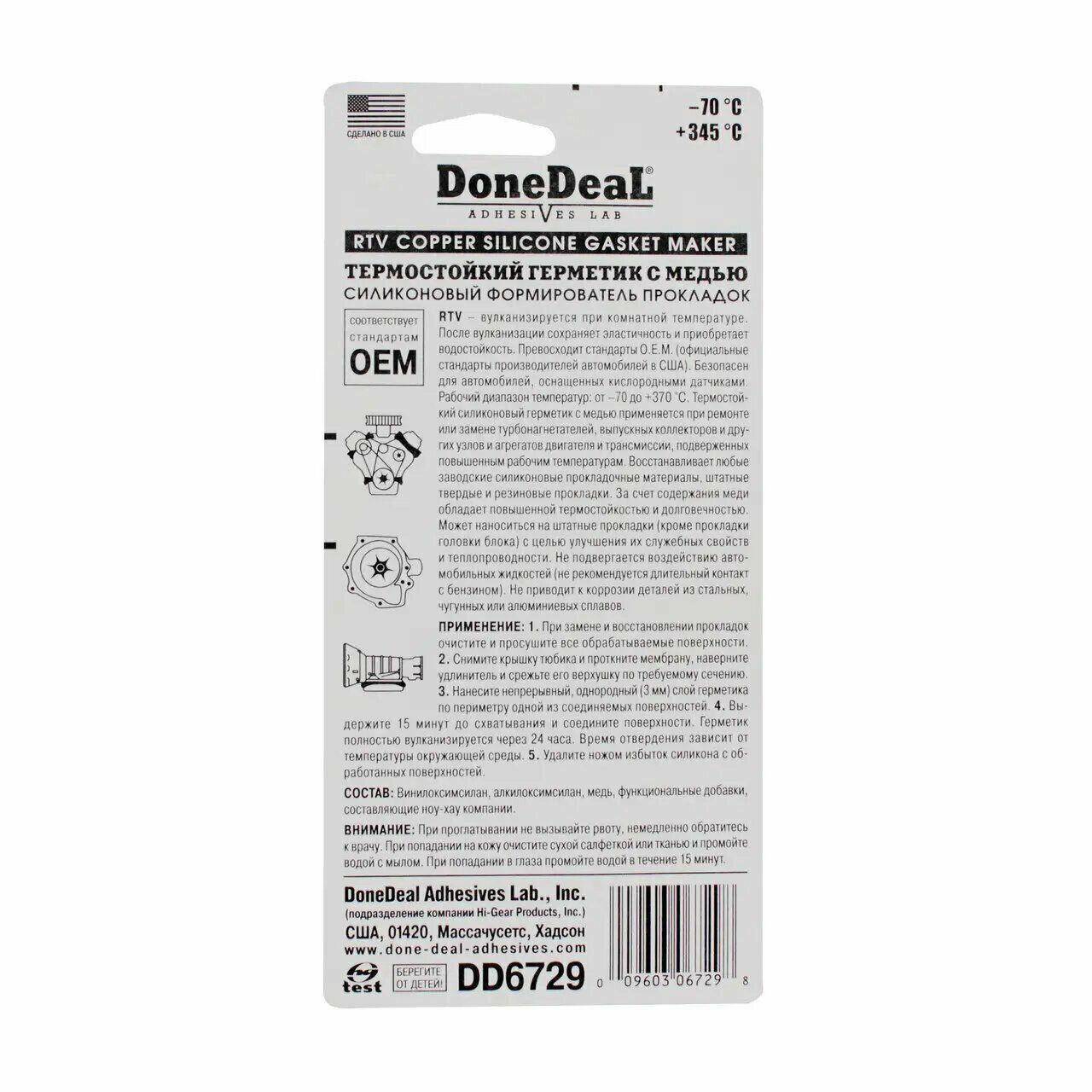 Термостойкий Медный Силиконовый Герметик Прокладка 85 Г DoneDeal арт. 6729DD