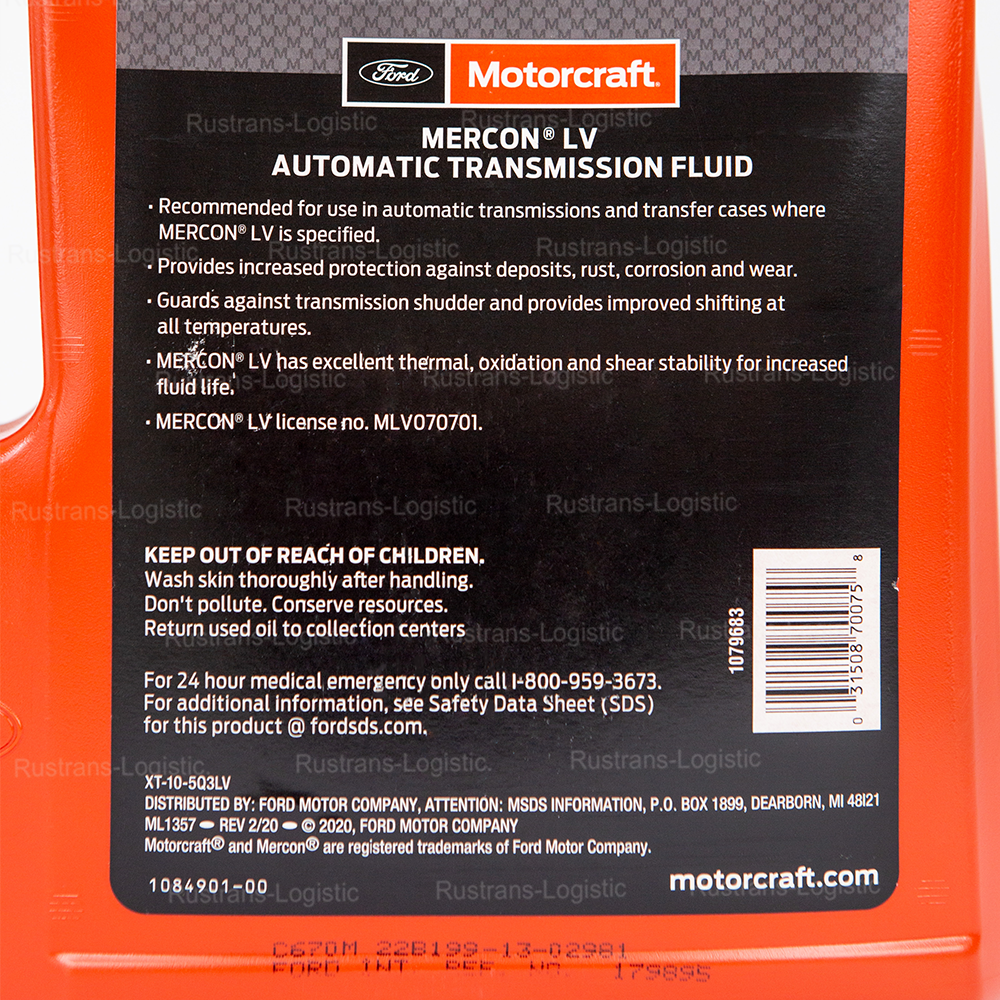 Масло трансмиссионное Ford Motorcraft MERCON-LV 0.946л XT-10-QLVC