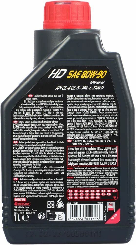 MOTUL 105781 Трансмиссионное масло HD (1L) 80W90 API GL-4 GL-5 MIL-L-2105D