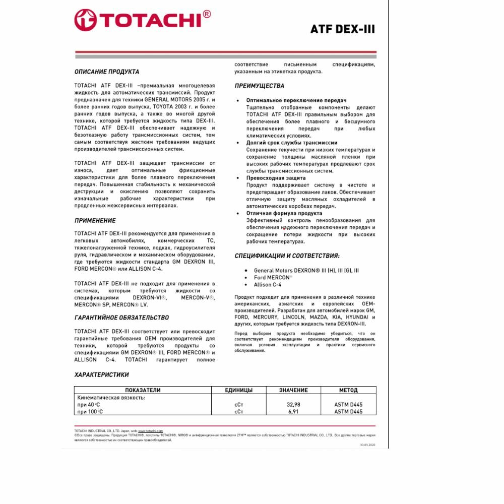 TOTACHI Жидкость для гидроусилителя TOTACHI ATF DEXRON III минеральная 1 л 21201