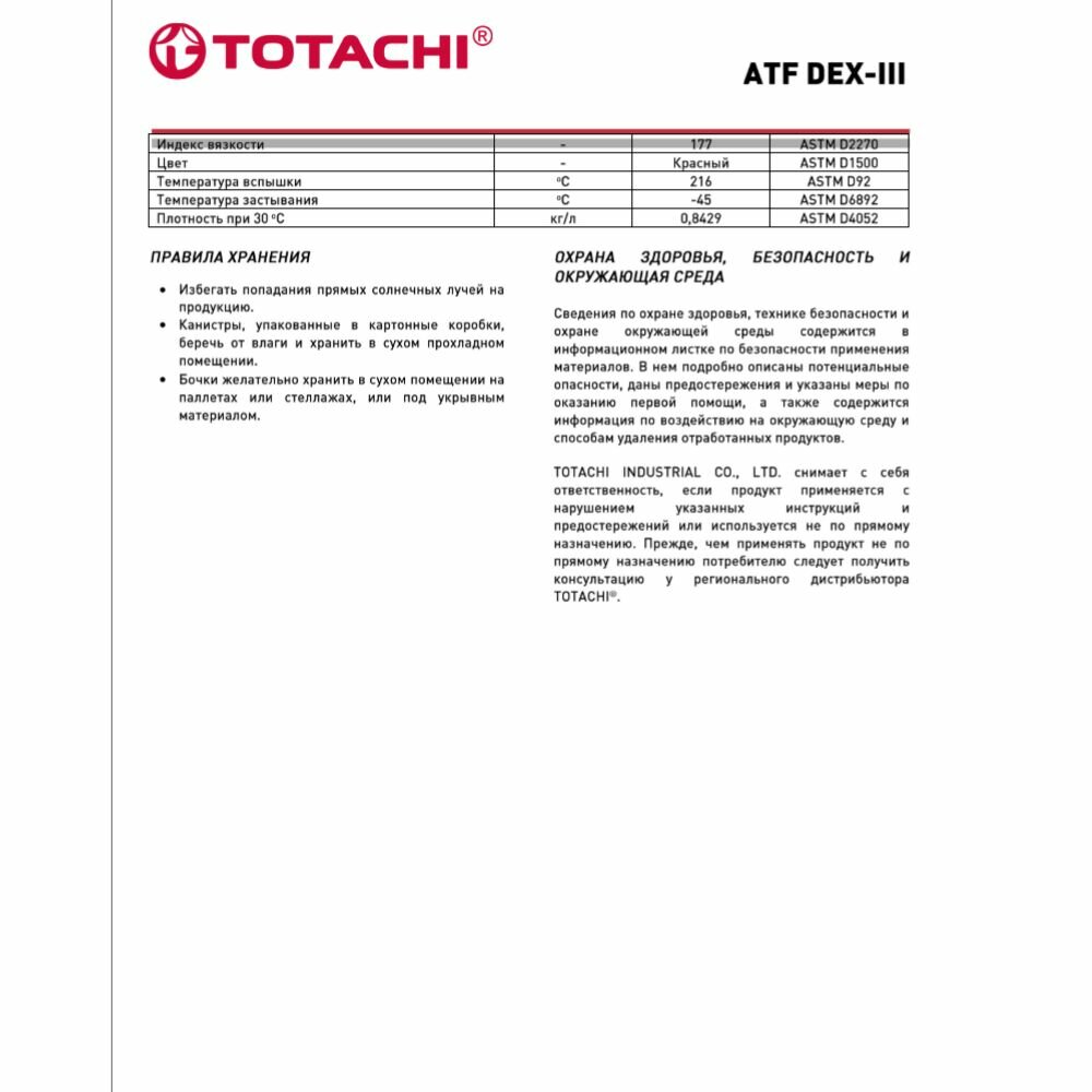 Масло трансмиссионное TOTACHI ATF Dex III 4 л 21204