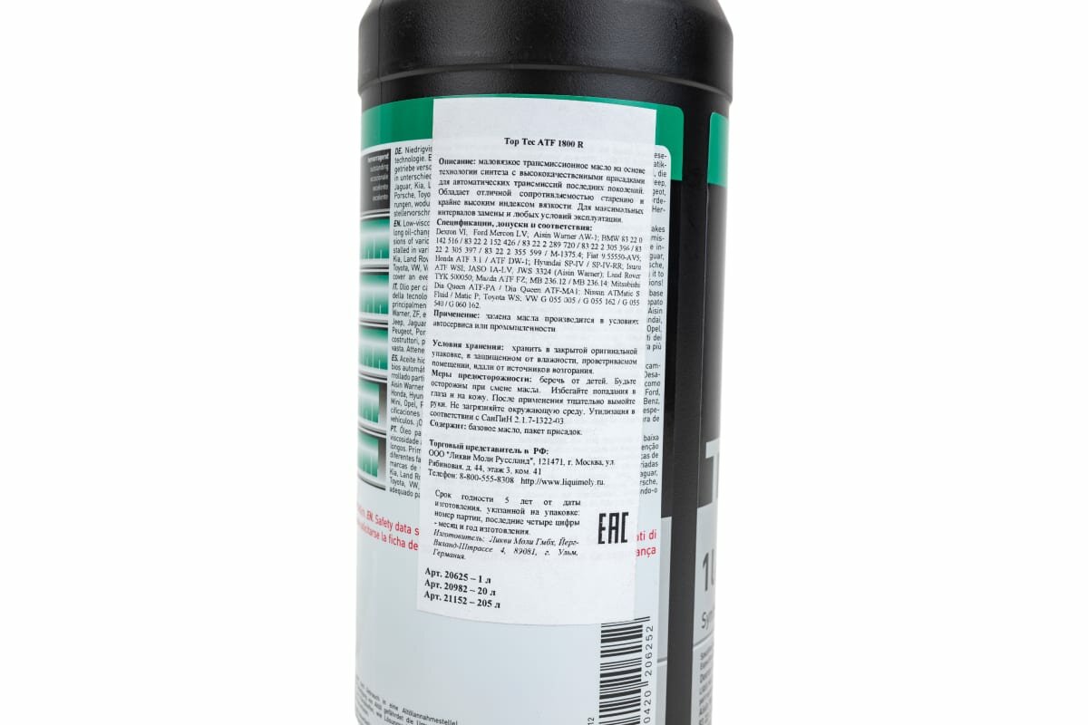 LIQUI MOLY 20625 Масло тр. НС-синт. д/АКПП Top Tec ATF 1800 R (1л) 1шт