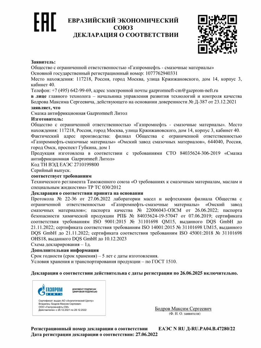 Смазка пластичная Литол-24, Gazpromneft