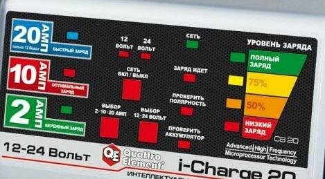 Зарядное устройство QUATTRO ELEMENTI i-Charge 20 (12В / 24В, 20/10/2 А полный автомат)