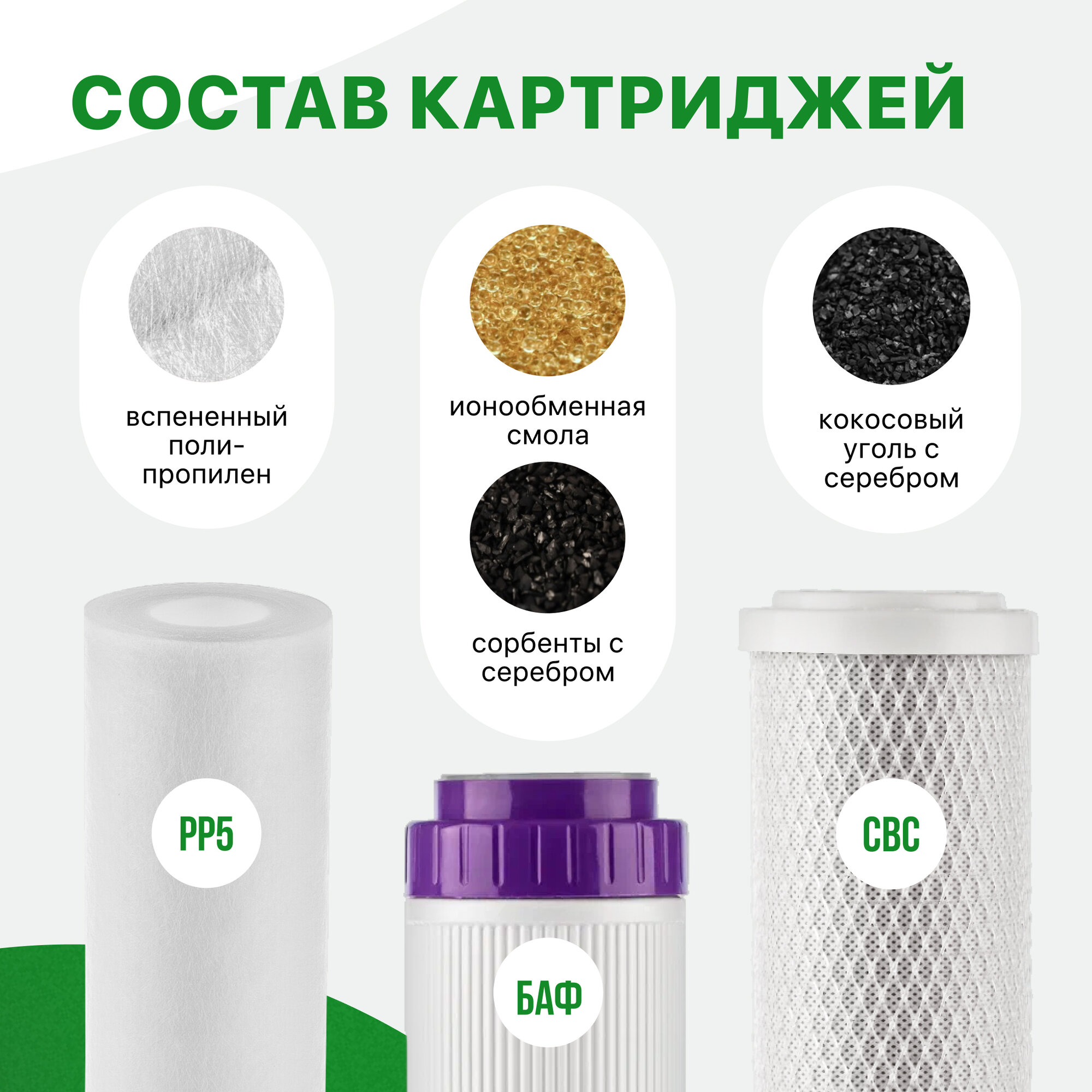 Купить Комплект картриджей Гейзер С-1, идеальное решение для очистки мягкой воды, 50085