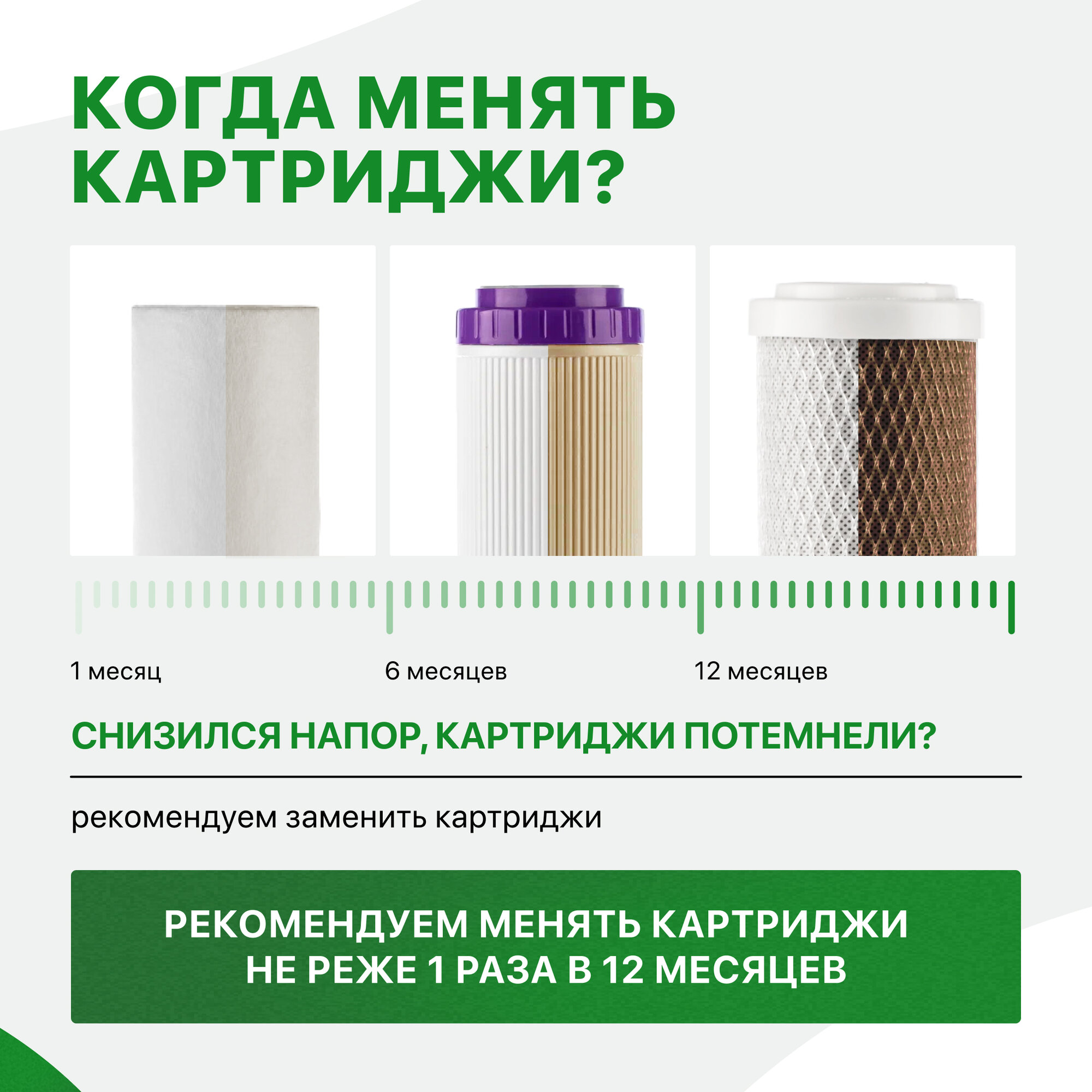 | Минусы: | После установки очень много и долго надо пропускать воду. Вода вонючая. После недели использования вкус воды становится хорошим. |