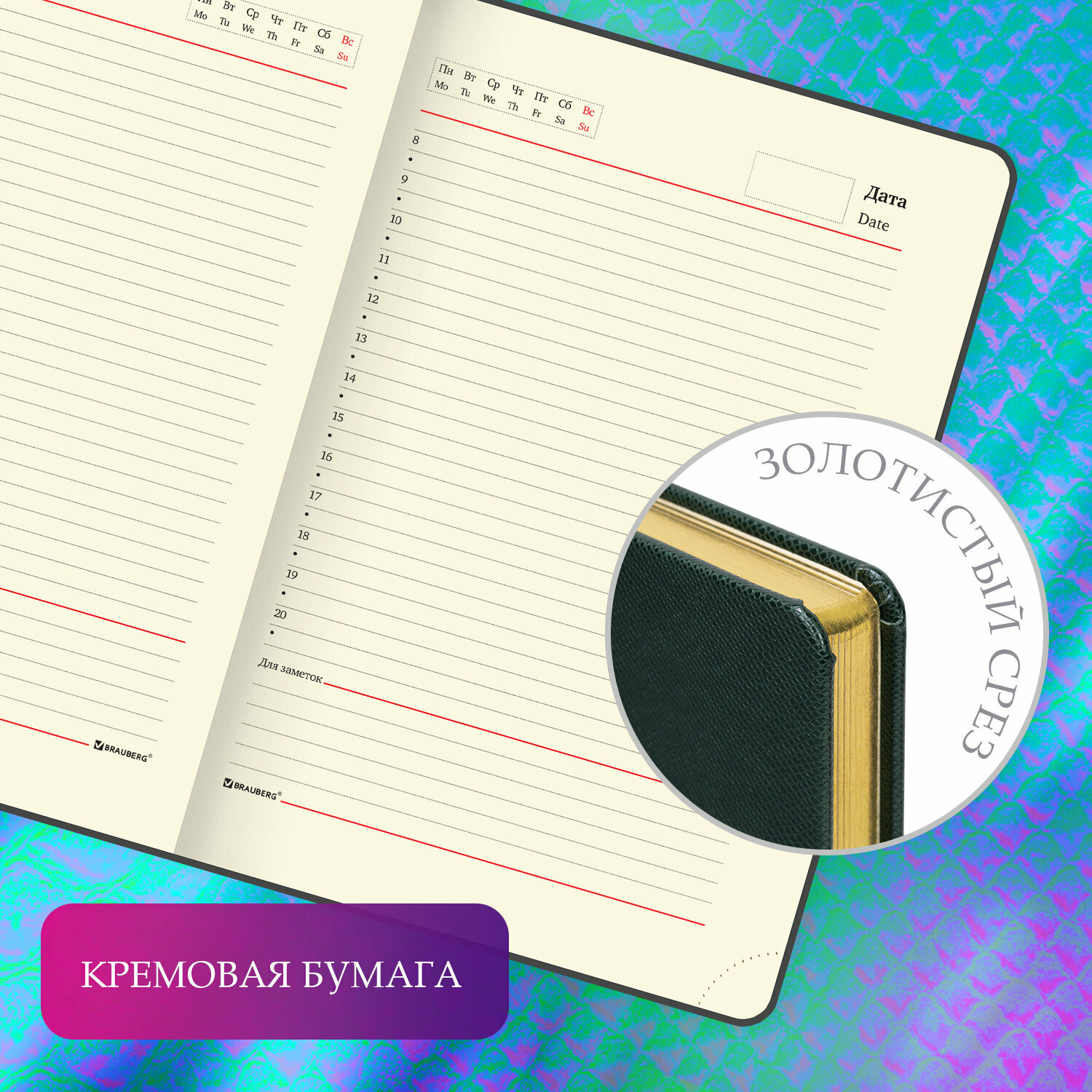 Ежедневник BRAUBERG недатированный, А5, 138х213 мм, Iguana, под змеиную кожу, 160 л., черный, кремовый блок, золотой срез, 125089