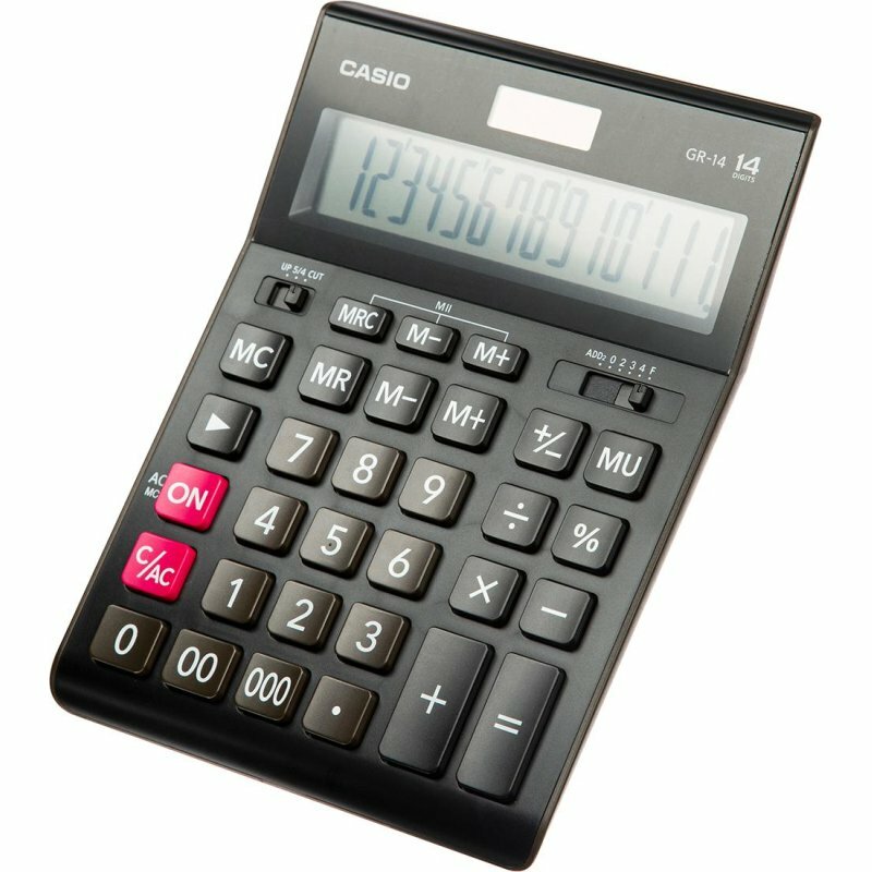 Калькулятор Casio настольный, 14 разрядов, двойное питание, 209х155 мм, черный (GR-14-W-EP) интересное: