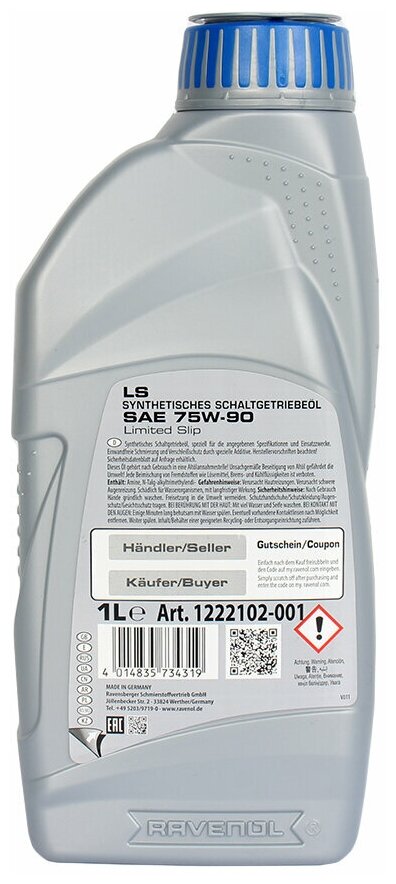 RAVENOL 1222102-001-01-999 Трансмиссионное масло LS 75W-90 (1л) (второй номер 4014835734319) 1шт