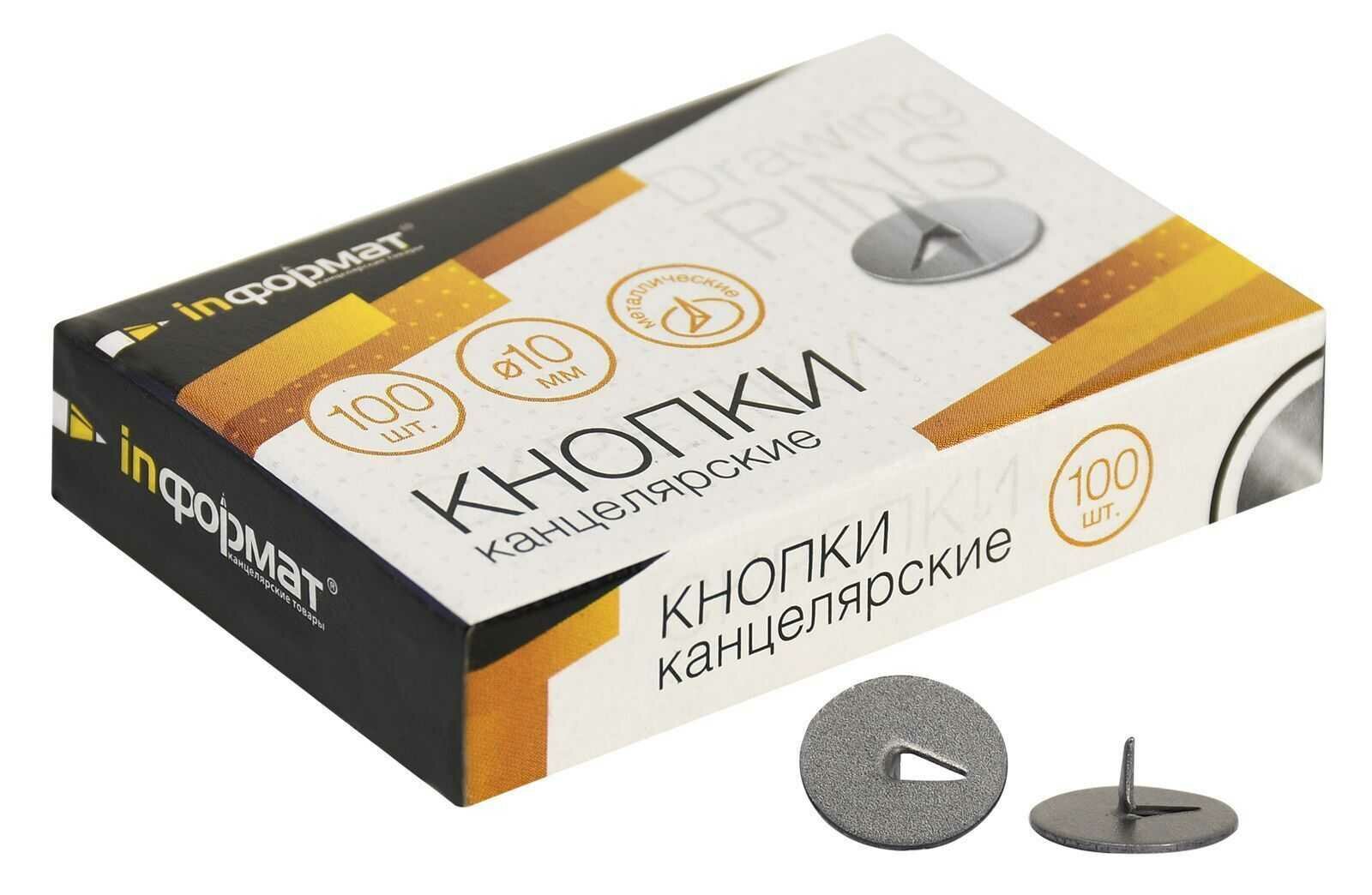 Кнопки канцелярские inформат, d=10мм, металлические, 100шт. (DPM10-100), 198 уп.