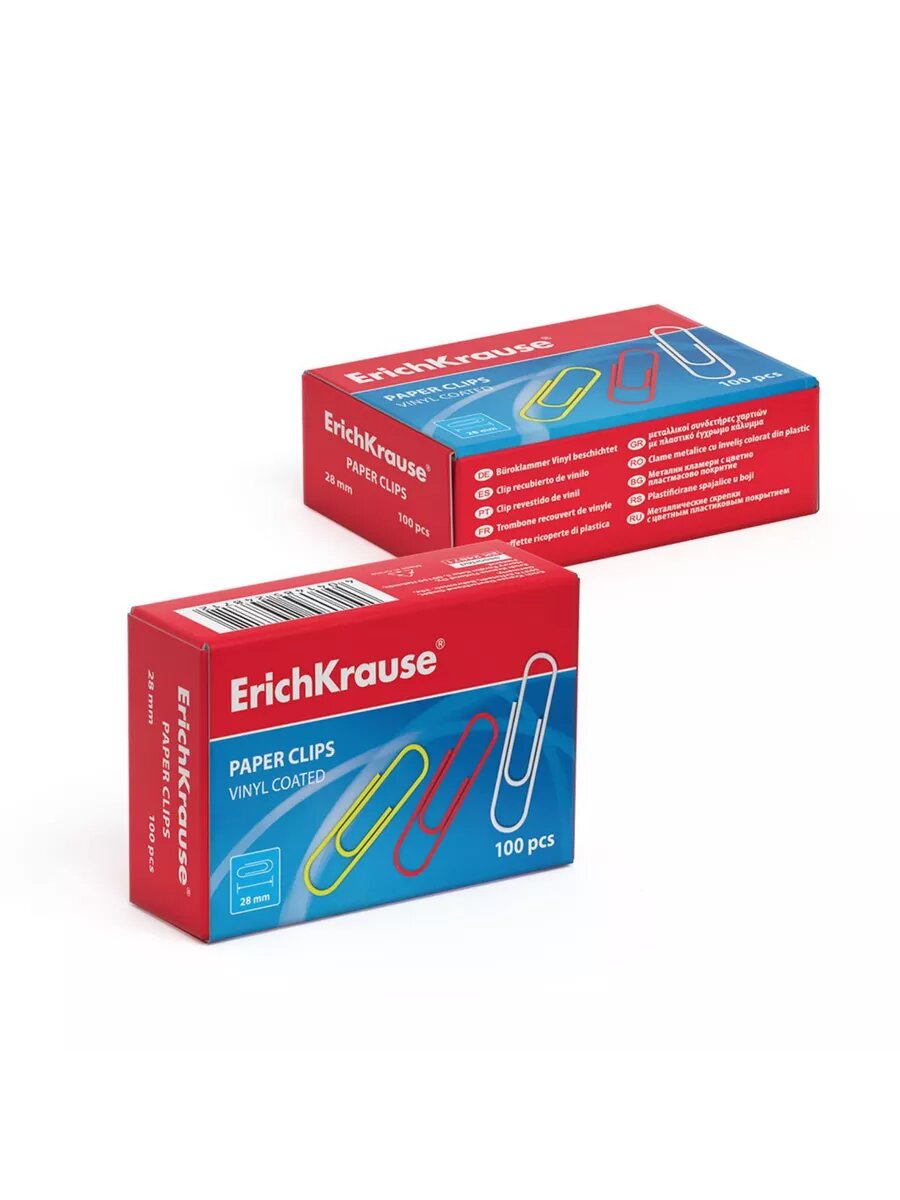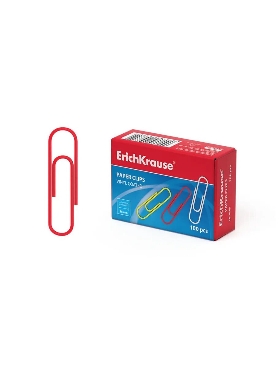 ErichKrause Скрепки канцелярские 25 мм, 100 шт, ErichKrause, никелированные, треугольные, картонная упаковка