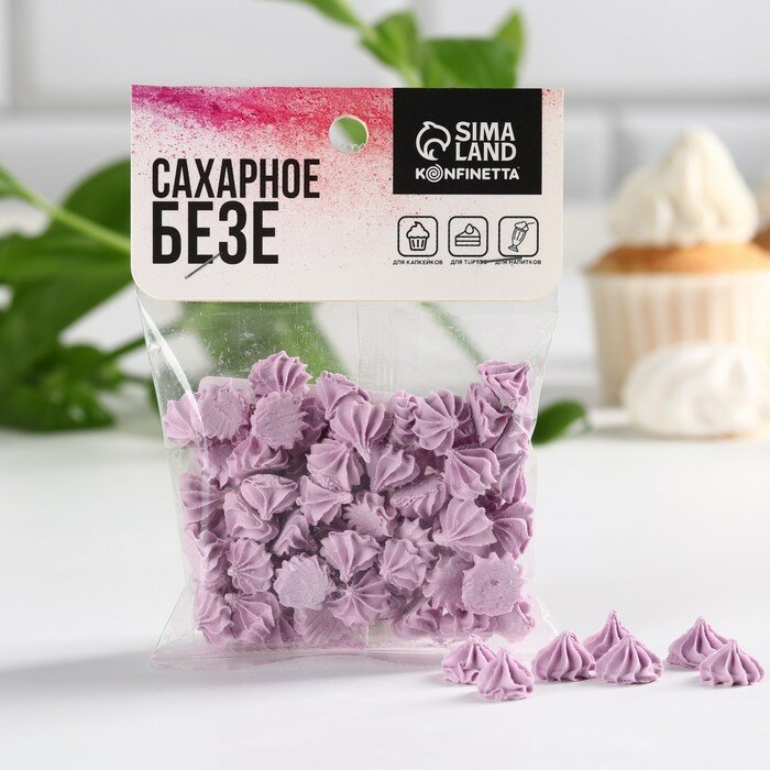 Безе сахарные сиреневые KONFINETTA для декора капкейков, торта, куличей и напитков, 30 г. интересное: