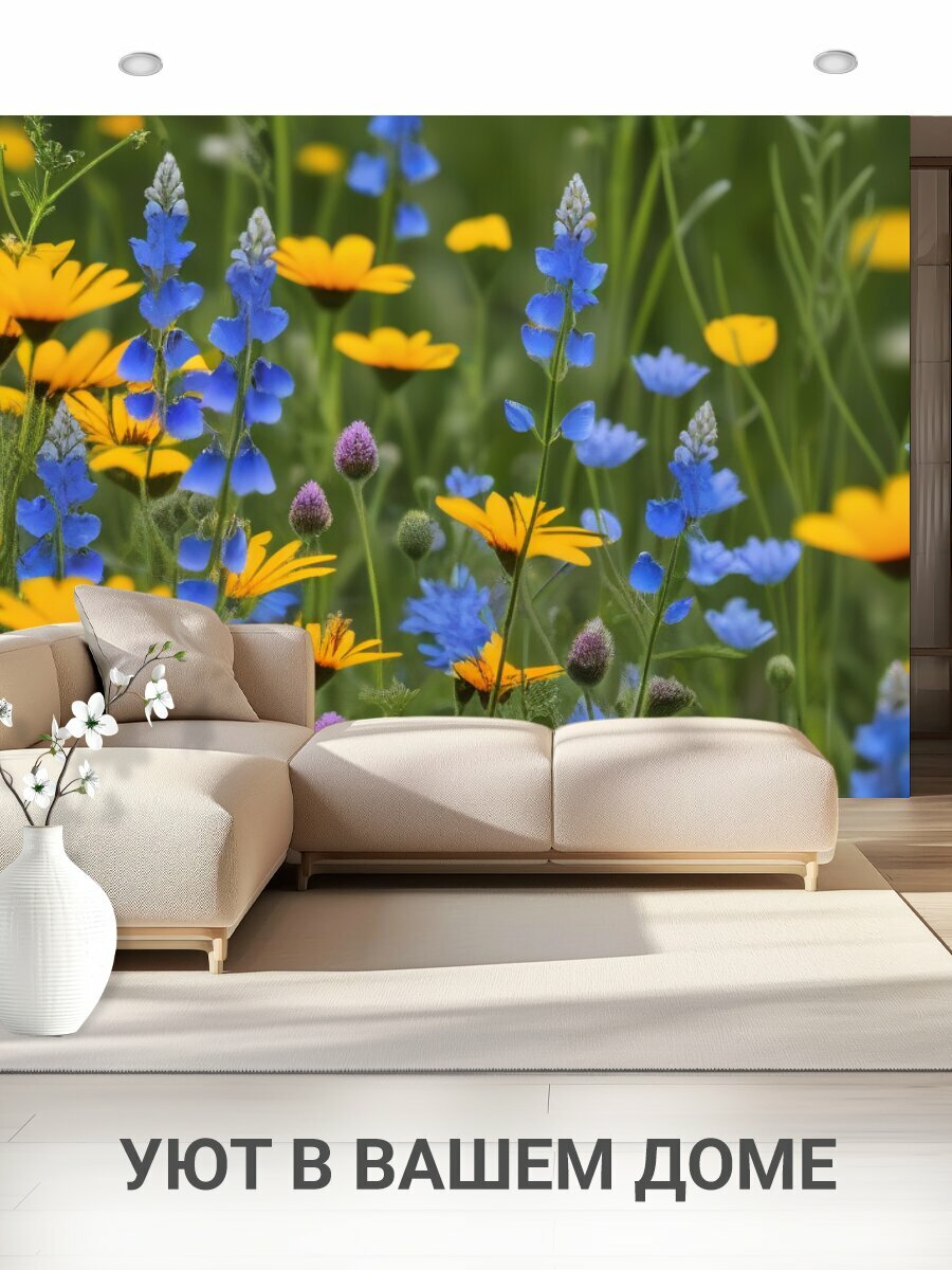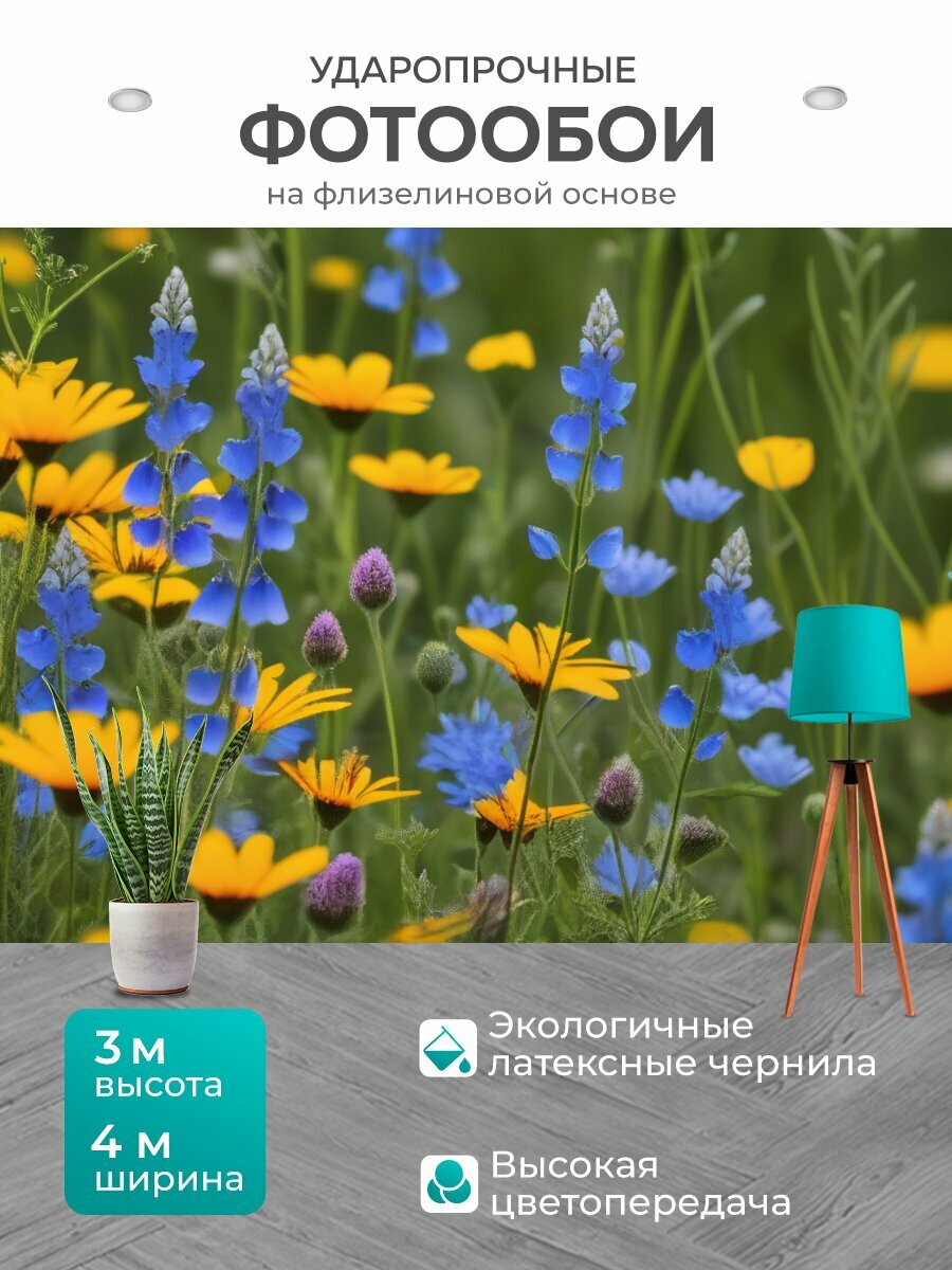 Фотообои моющиеся ударопрочные "Поле с дикими цветами" 400x300 см. флизелиновые на стену интересное: