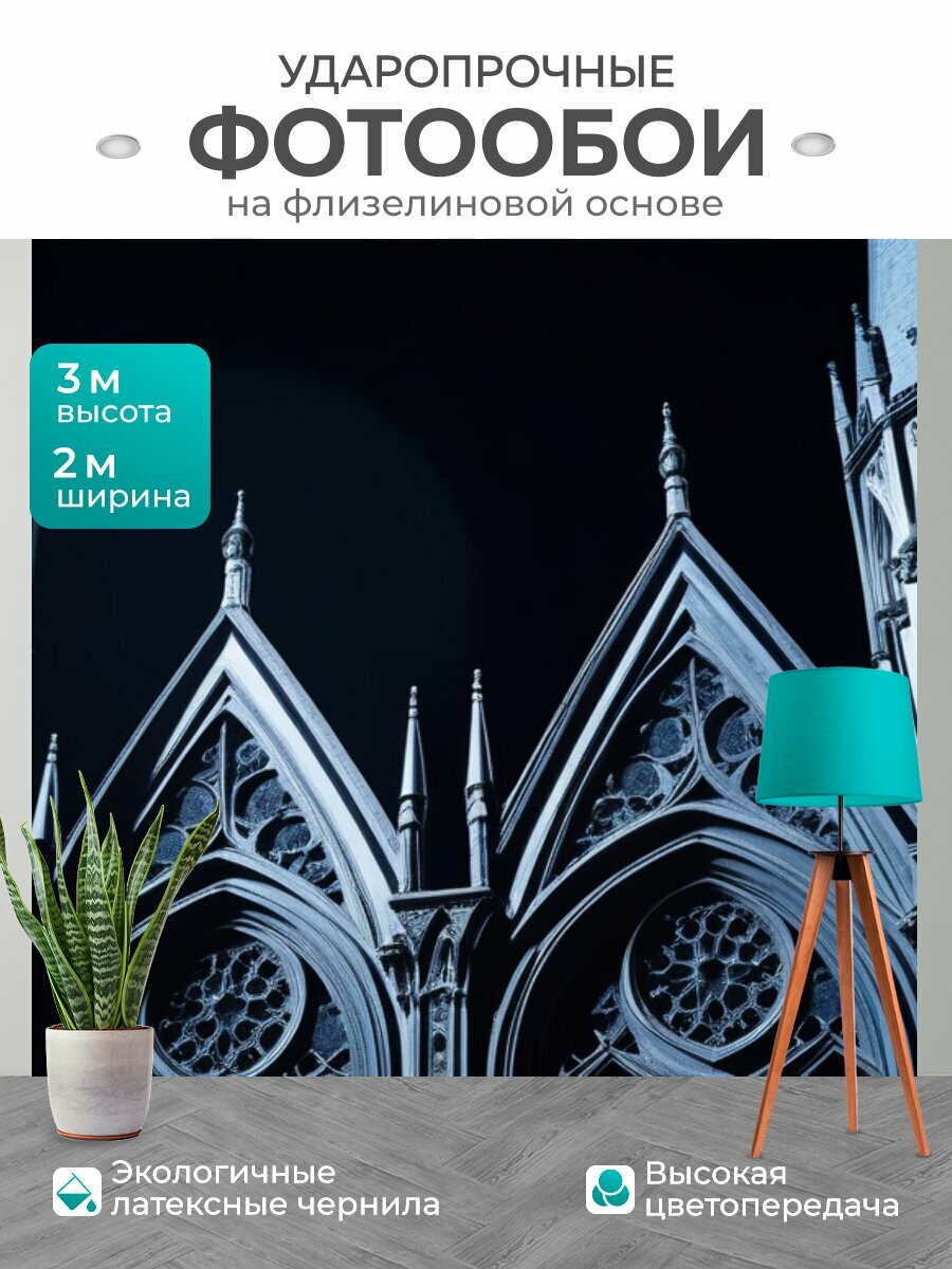 Фотообои моющиеся ударопрочные "Луна и готическая архитектура" 300x300 см. флизелиновые на стену интересное: